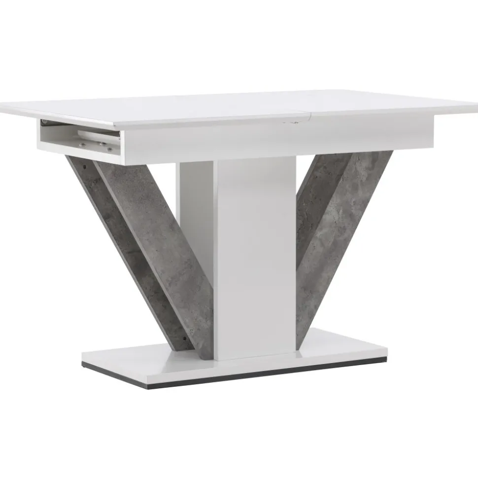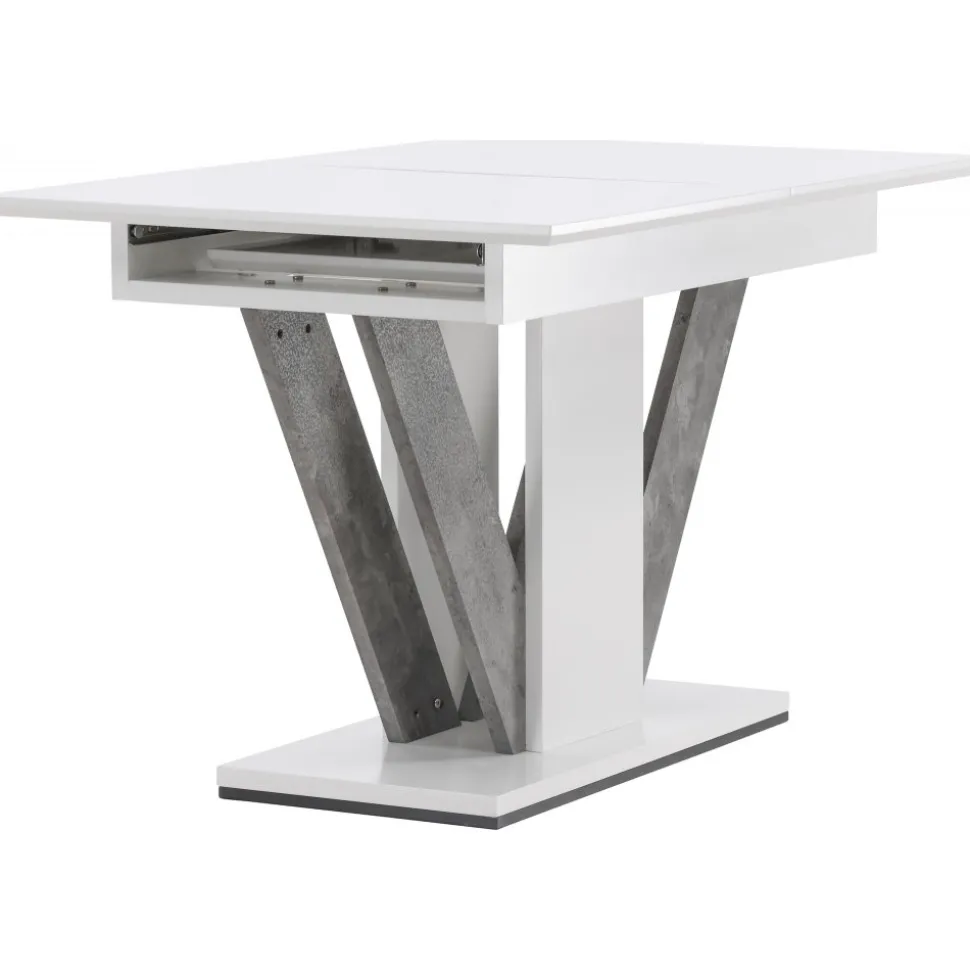Elegant och pampigt med bordsskiva i MDF. Robust, centrerat underrede med detaljer i grå MDF. Bordet är förlängningsbart vilket gör att det lämpar sig utmärkt både till små och stora sällskap. Bjud in till många sociala stunder framöver!