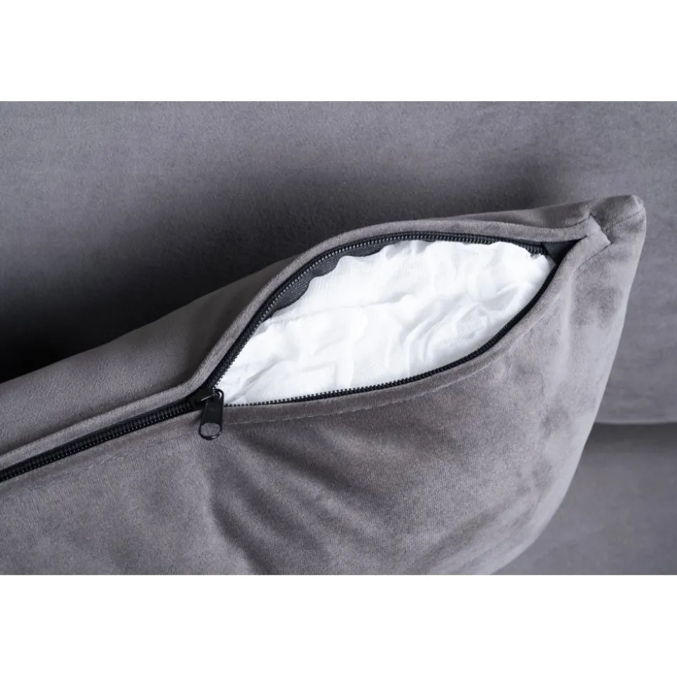- Klädsel: Mörkgrå sammetstyg av polyester