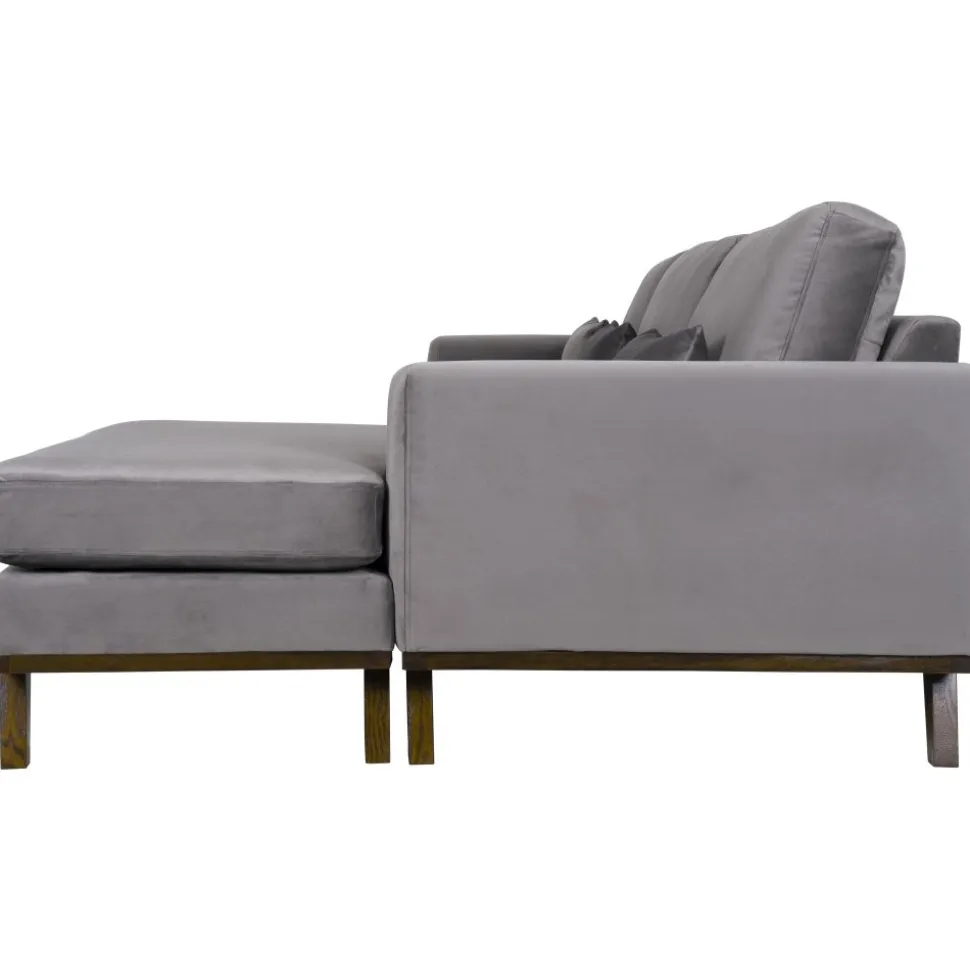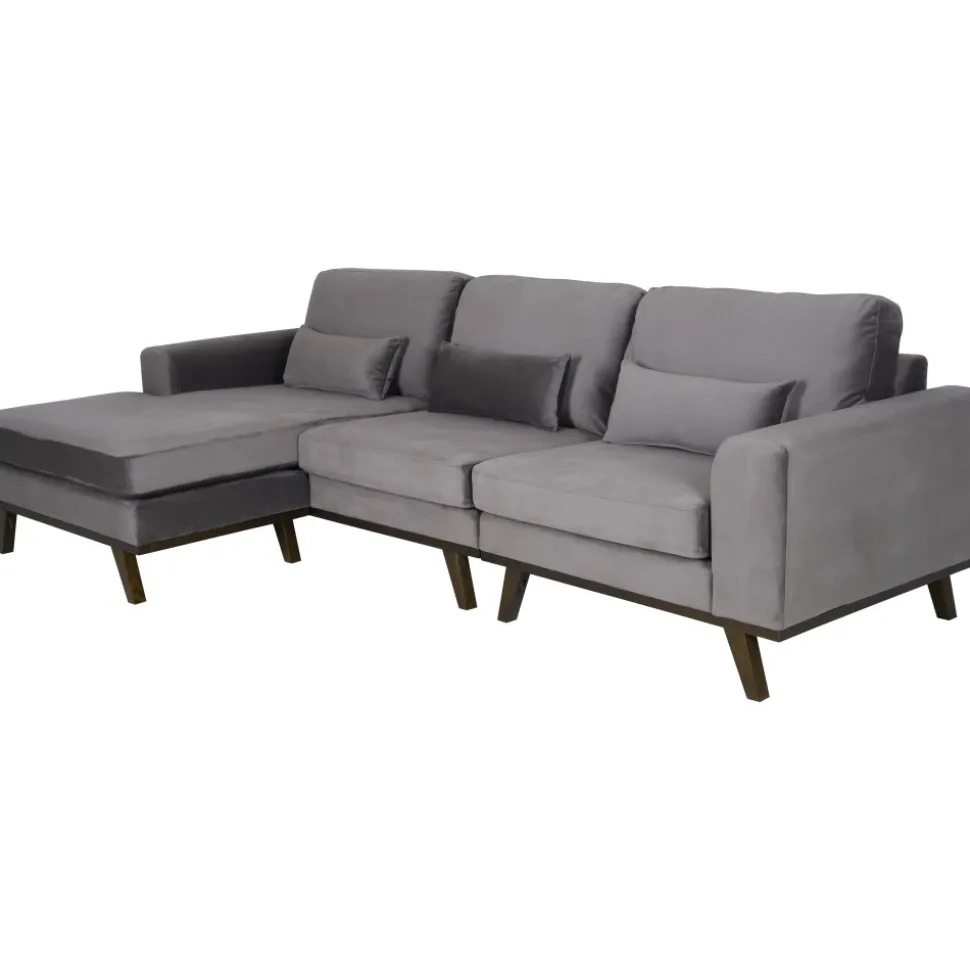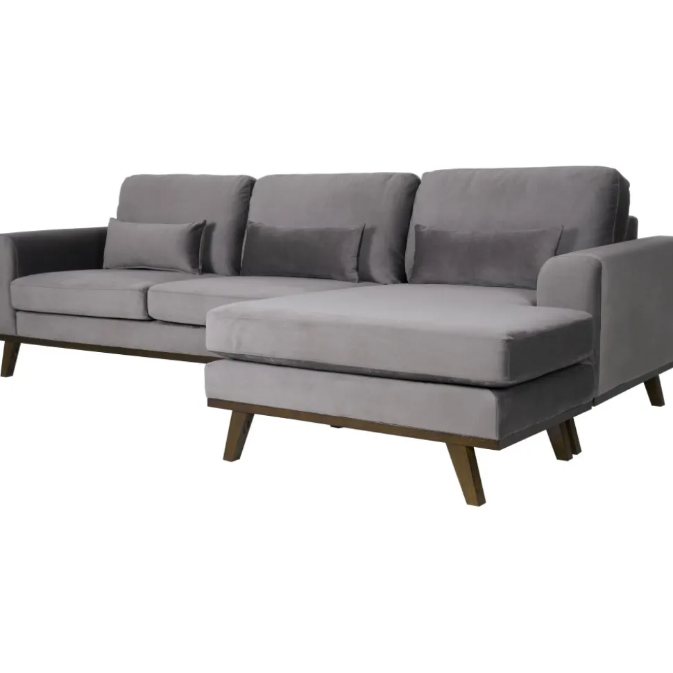 Copenhagen soffserie är en mycket påkostad möbelserie med en skandinavisk design och utförande. Möblerna i Copenhagen-serien kännetecknas av den välarbetade trälisten som sitter som en ram nertill runt hela soffan. Stoppningen är gjord med fibertopp på en 35 kg kallskumkärna för en komfortabel och hållbar dyna. Massiva svartbetsade ekben som matchar träramen på soffan. Klädseln är ett mjukt och hållbart tyg med sammetskänsla. Divandelen går att placera på valfri sida.