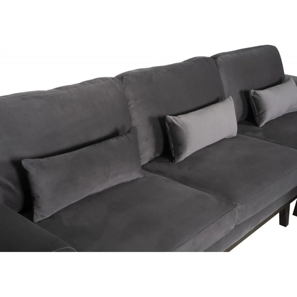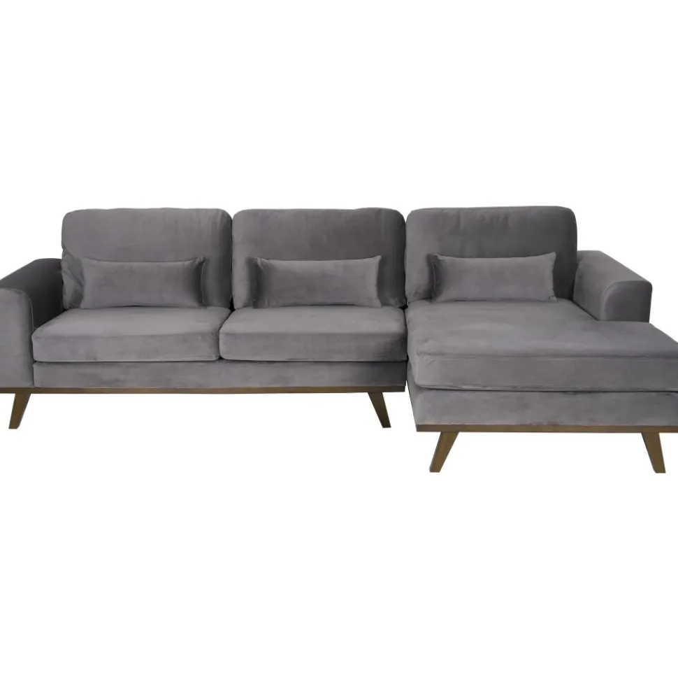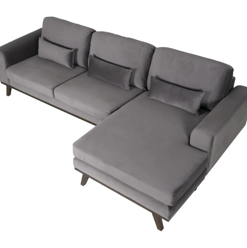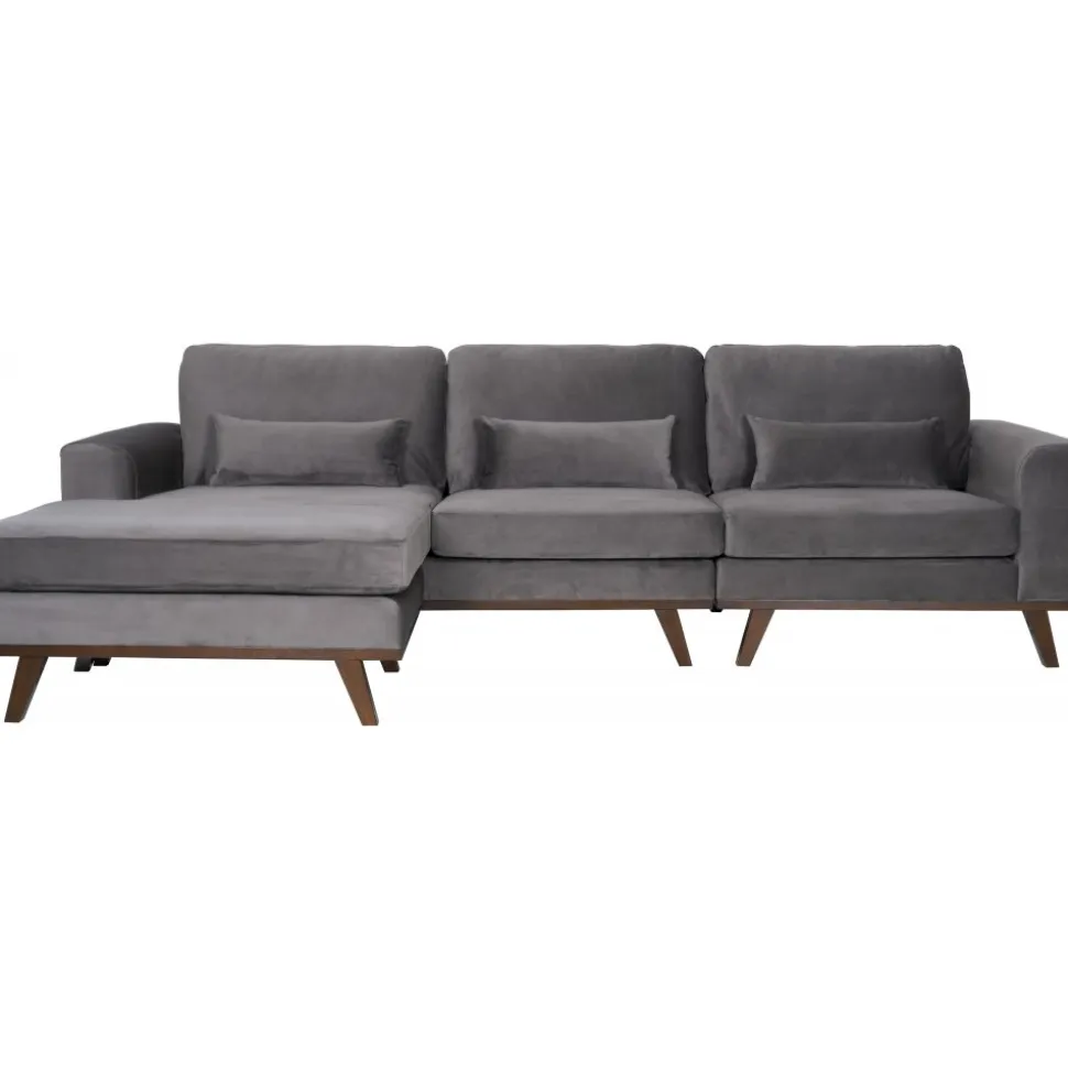 Copenhagen soffserie är en mycket påkostad möbelserie med en skandinavisk design och utförande. Möblerna i Copenhagen-serien kännetecknas av den välarbetade trälisten som sitter som en ram nertill runt hela soffan. Stoppningen är gjord med fibertopp på en 35 kg kallskumkärna för en komfortabel och hållbar dyna. Massiva svartbetsade ekben som matchar träramen på soffan. Klädseln är ett mjukt och hållbart tyg med sammetskänsla. Divandelen går att placera på valfri sida.