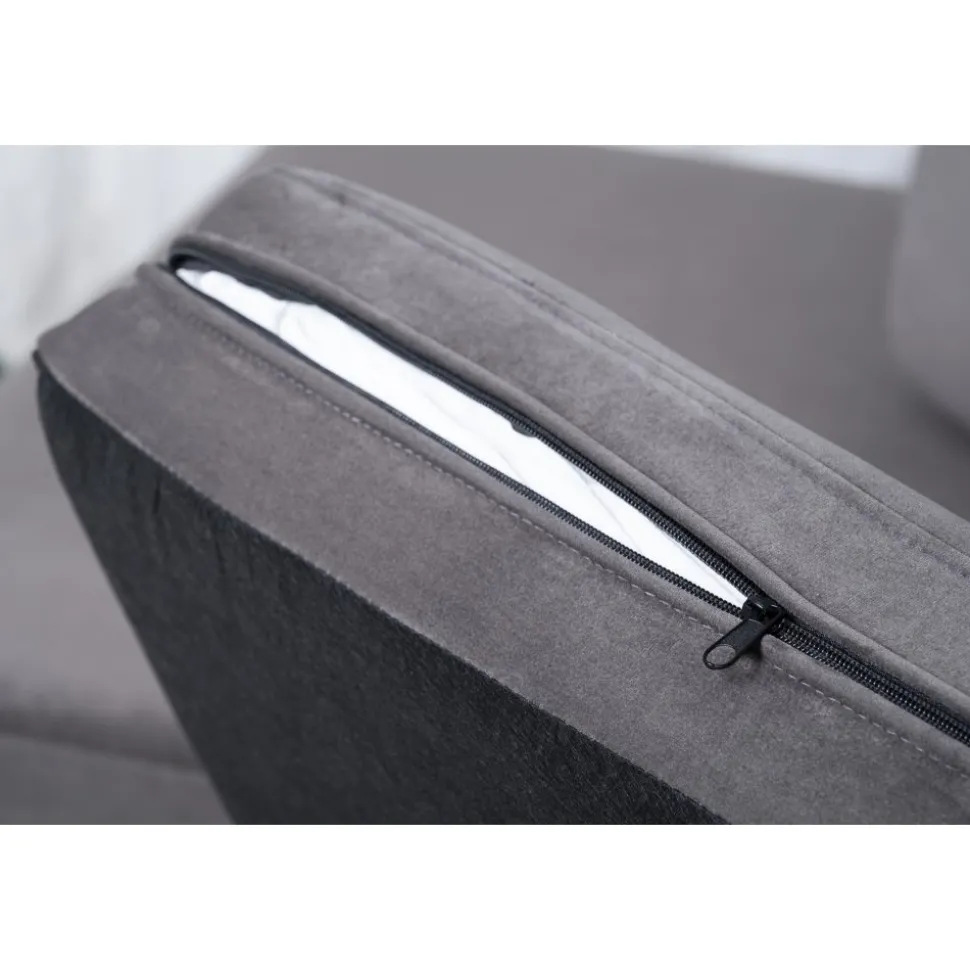 - Klädsel: Mörkgrå sammetstyg av polyester