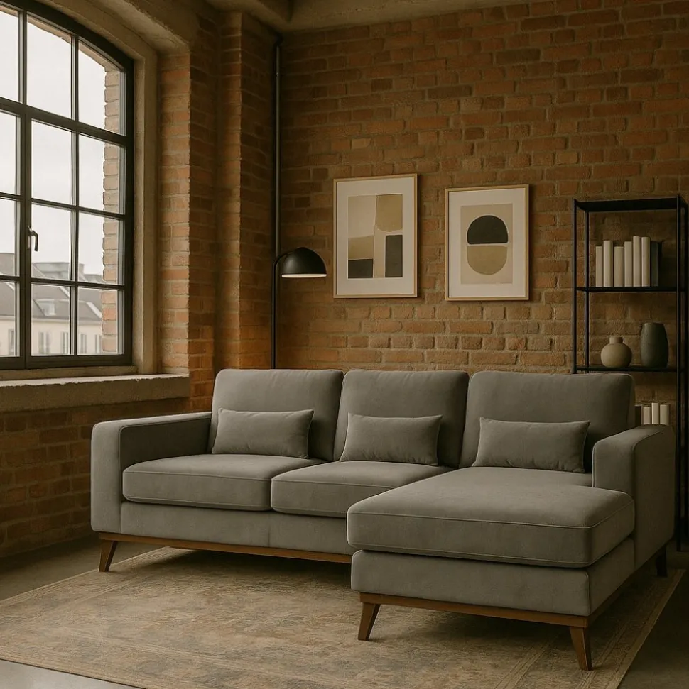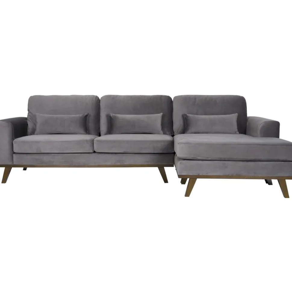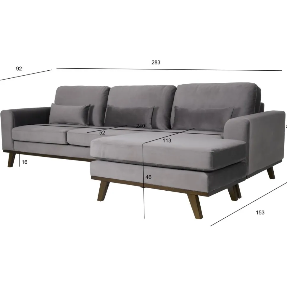 Copenhagen soffserie är en mycket påkostad möbelserie med en skandinavisk design och utförande. Möblerna i Copenhagen-serien kännetecknas av den välarbetade trälisten som sitter som en ram nertill runt hela soffan. Stoppningen är gjord med fibertopp på en 35 kg kallskumkärna för en komfortabel och hållbar dyna. Massiva svartbetsade ekben som matchar träramen på soffan. Klädseln är ett mjukt och hållbart tyg med sammetskänsla. Divandelen går att placera på valfri sida.