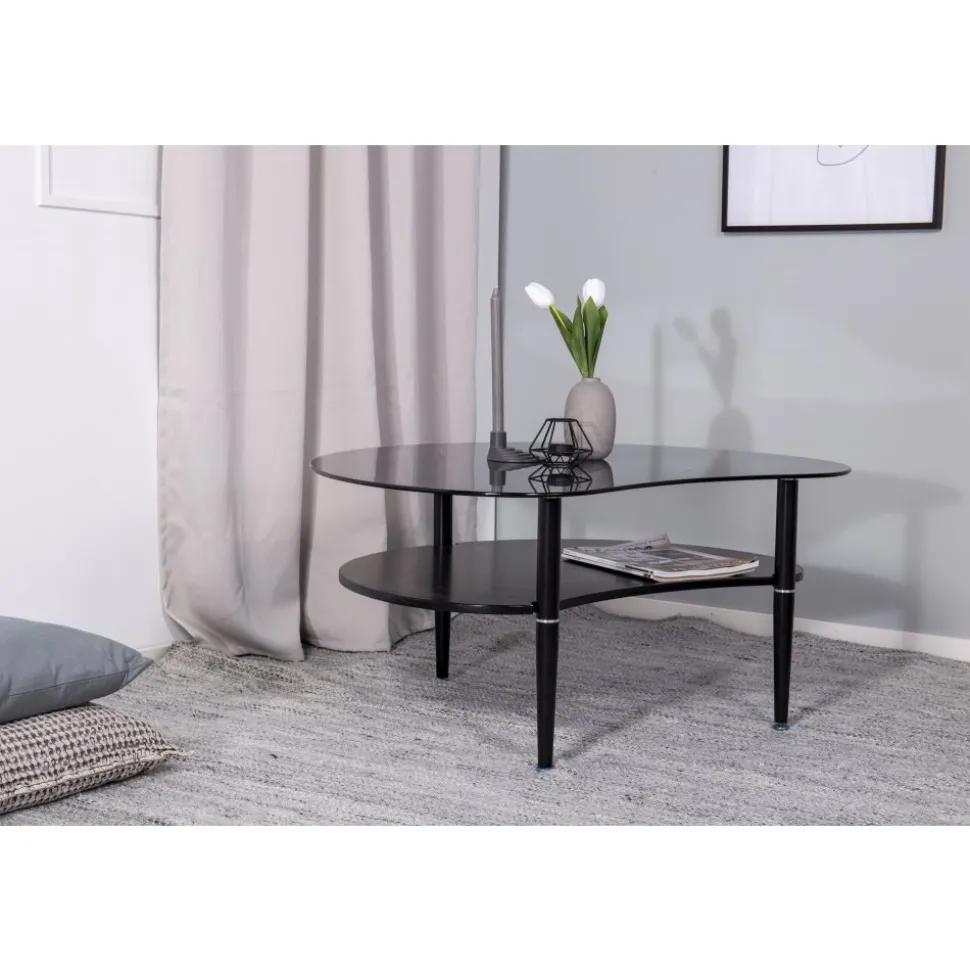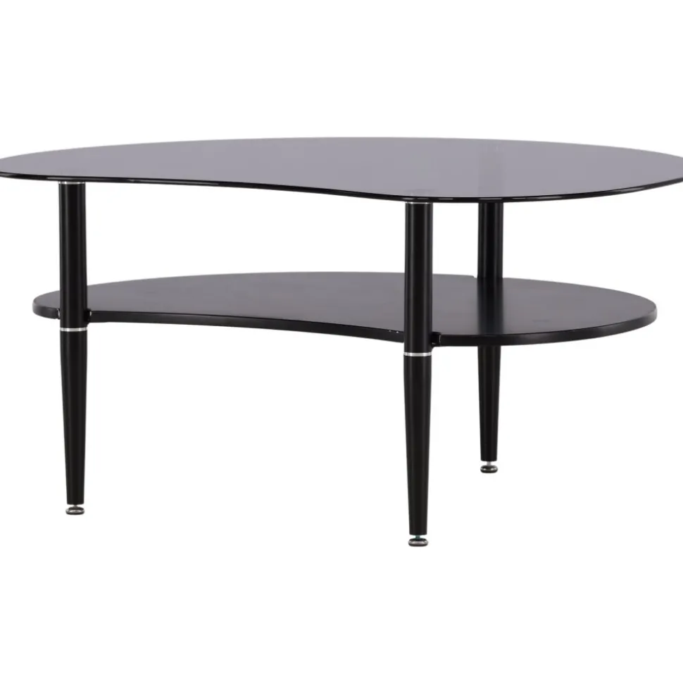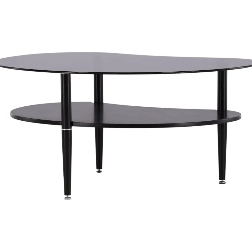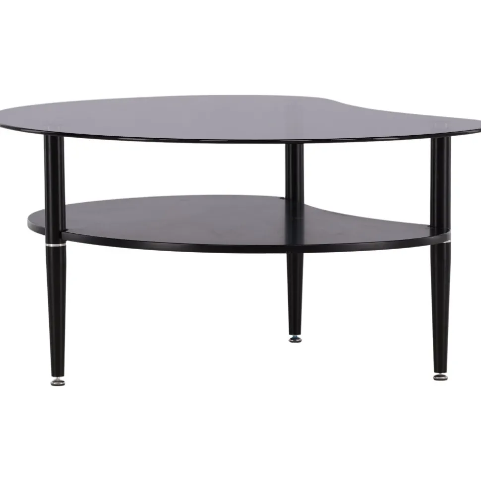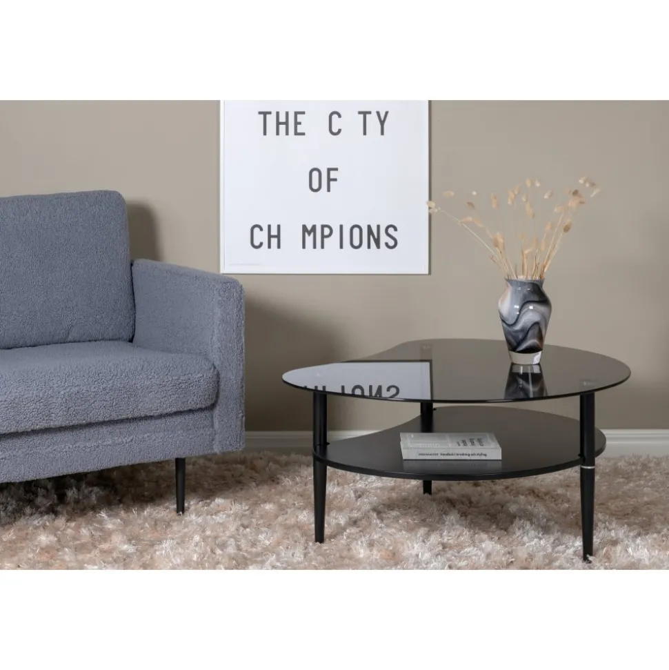 Med Egg får du ett unikt och praktiskt att placera i vardagsrummet! Bordet har en unik form med en bordsskiva i svart glas tillsammans med en praktisk hylla undertill, perfekt för förvaring eller dekoration. Soffbordets ben är i svart stål och är rundade för en lugnare känsla. Den enkla färgen och de mjuka formerna skapar en varm och hemtrevlig känsla. Placera på en mysig matta och pryd med vackra dekorationer för ett helhetsintryck.