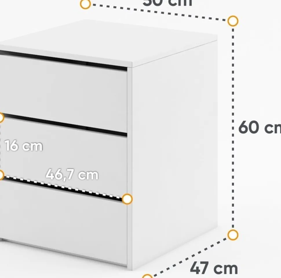 Byrå av spånskiva. Handtag av plast med matt finish. Levereras omonterad.
