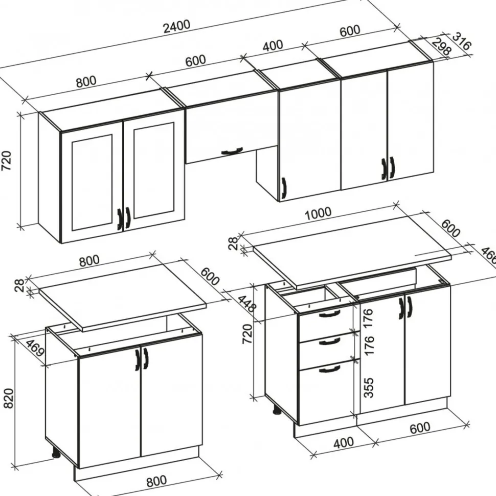 - 1 x Överskåp med enkeldörr & dubbeldörr