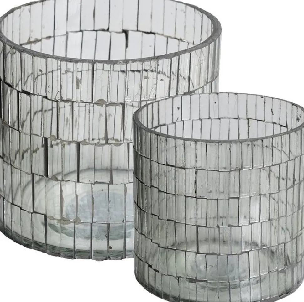 Ljuslykta i genomskinlig, rustik glasmosaik. Glaset är handblåst och därför är varje lykta unik. Luftbubblor och ojämnheter i glaset kan förekomma, vilket gör det lite extra personligt.