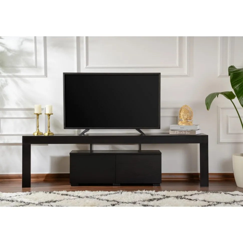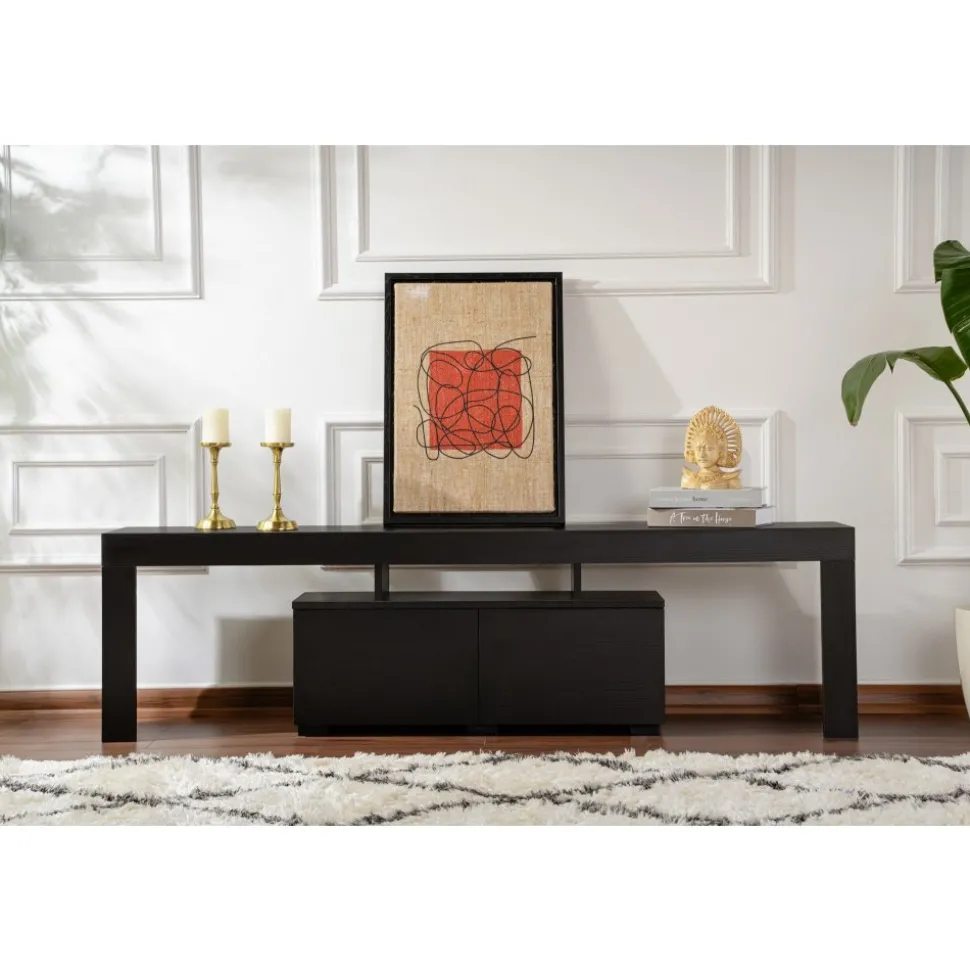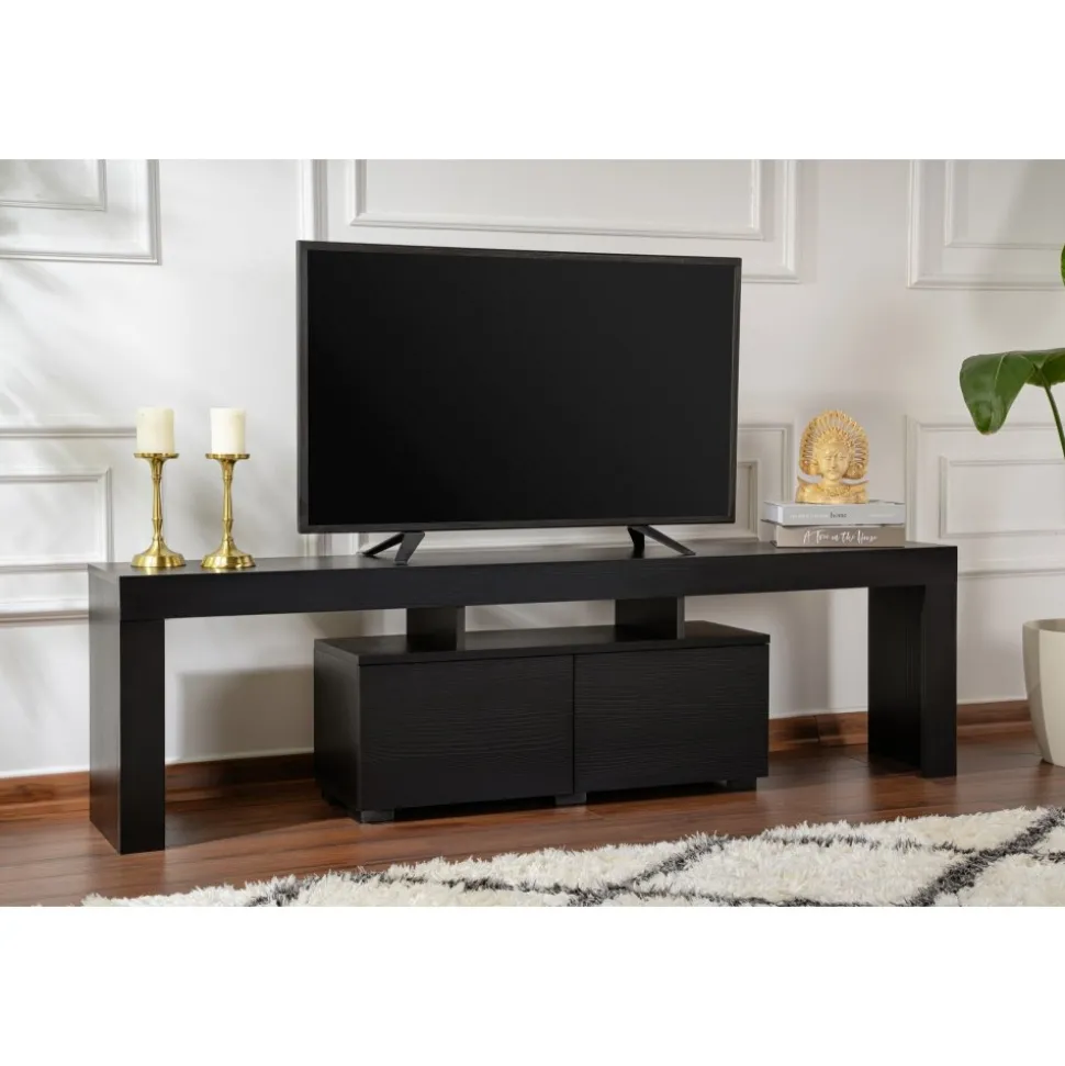 Mediabänk av melaminbelagd spånskiva.