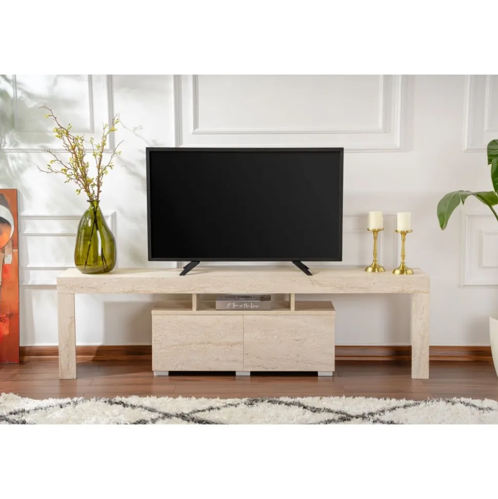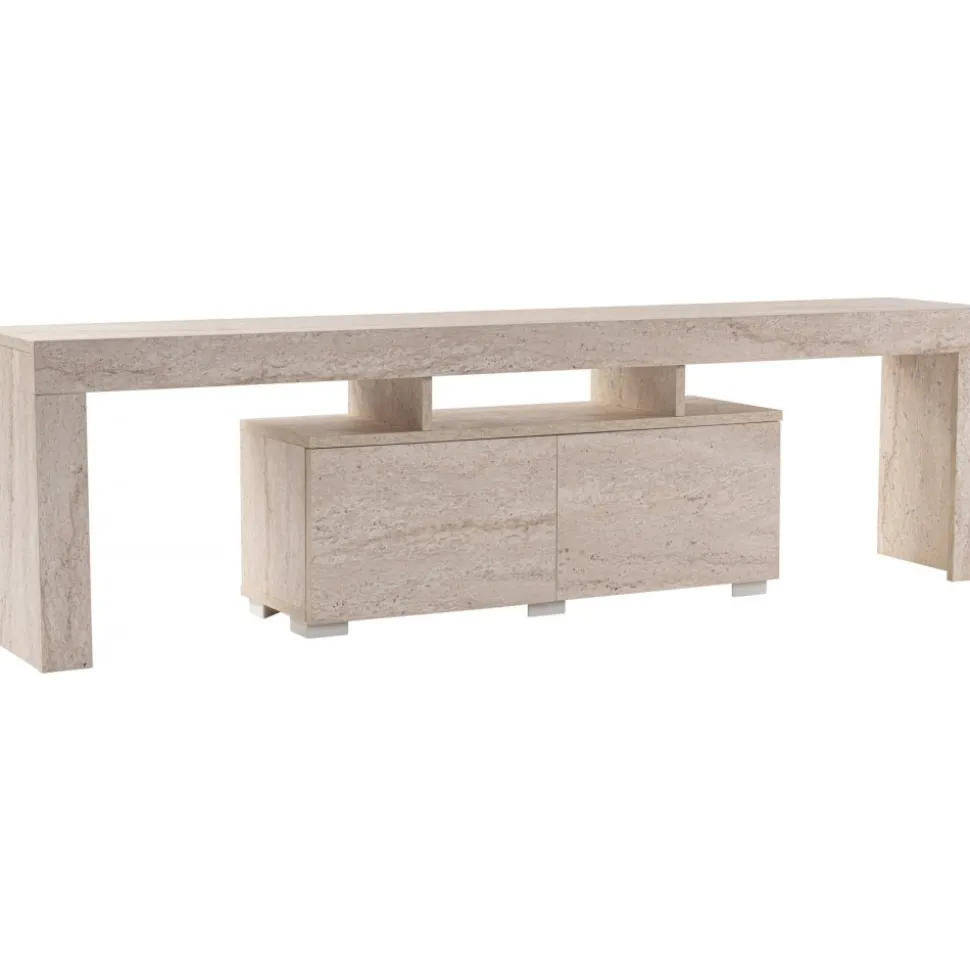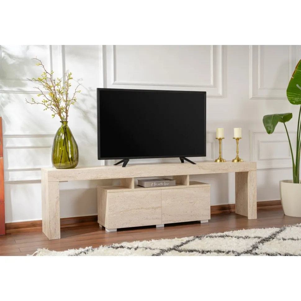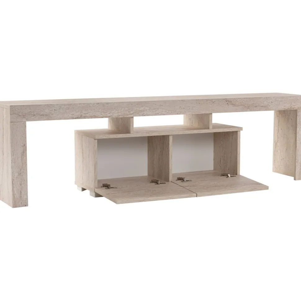 Mediabänk av melaminbelagd spånskiva.