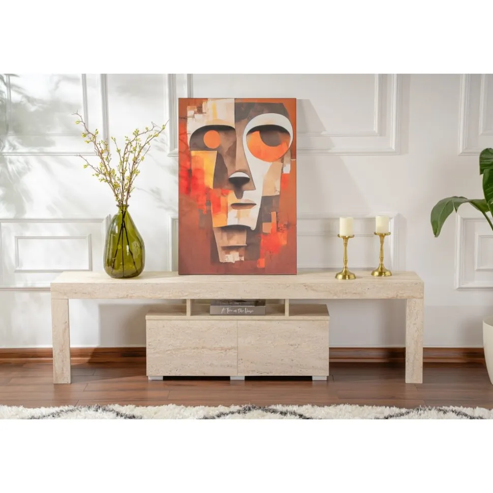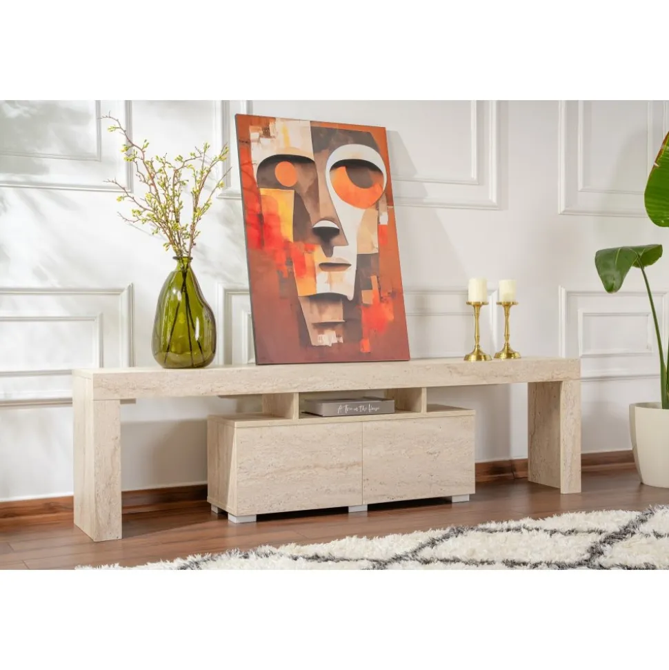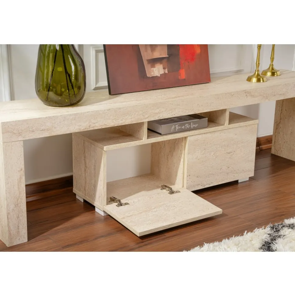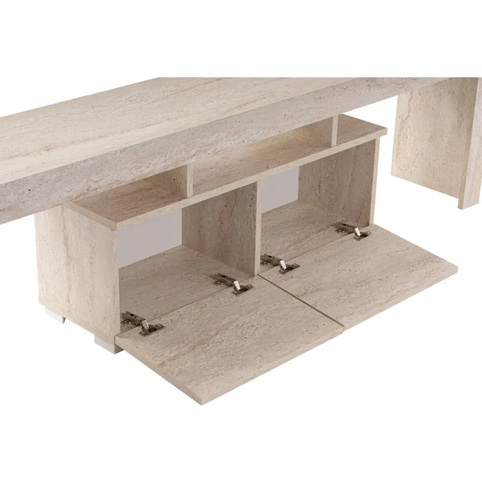Mediabänk av melaminbelagd spånskiva.