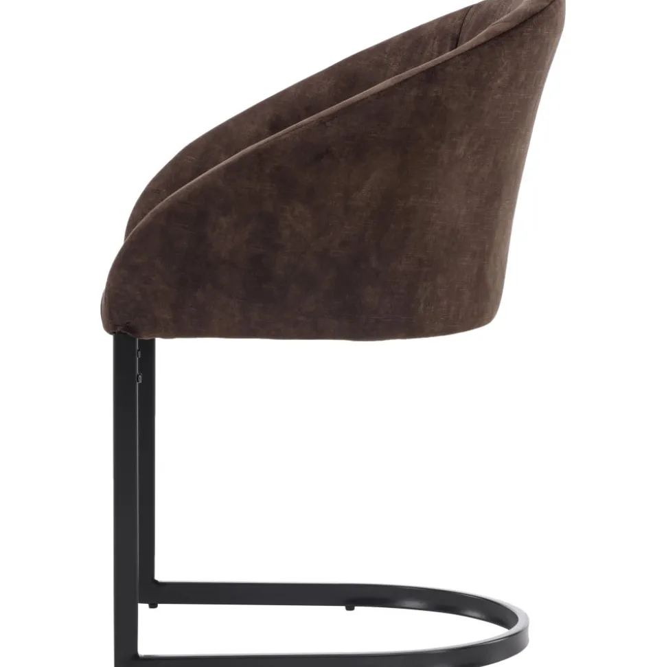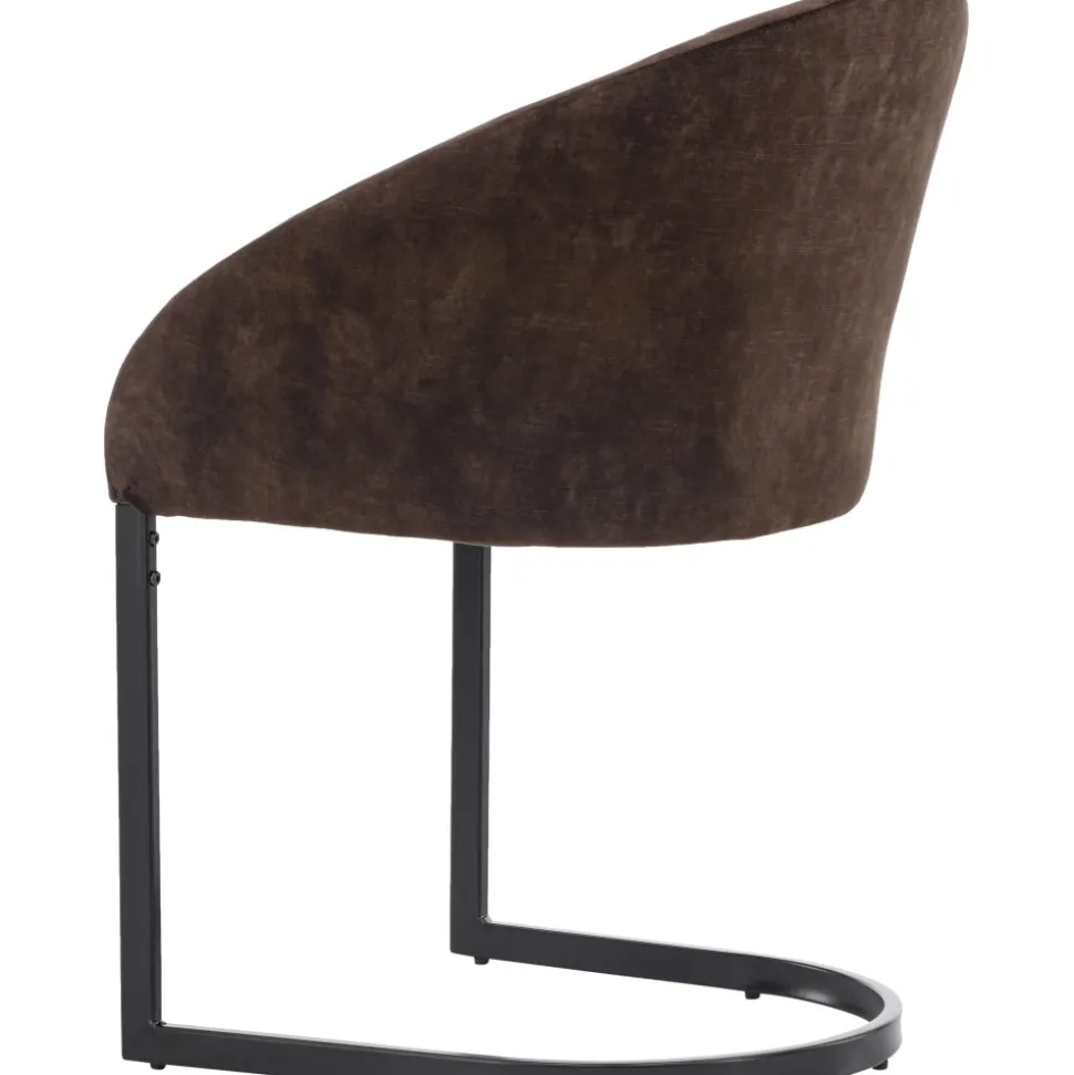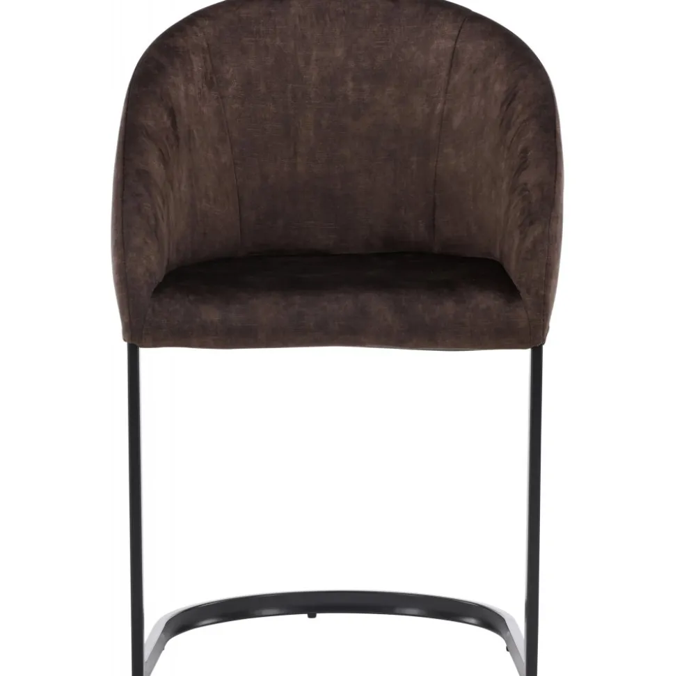 Matstol med ett nostalgiskt uttryck som är lika stilren som bekväm och skapar ett lyxigt blickfång kring ditt matbord! Stolen har en helklädd sits med rundat ryggstöd i brunt tyg och dekorativ, minimalistisk benstomme i matt brunt stål. Den moderna designen imponerar och är helt i linje med trenderna. Sitt bekvämt och njut av måltiderna i denna eleganta matstol!