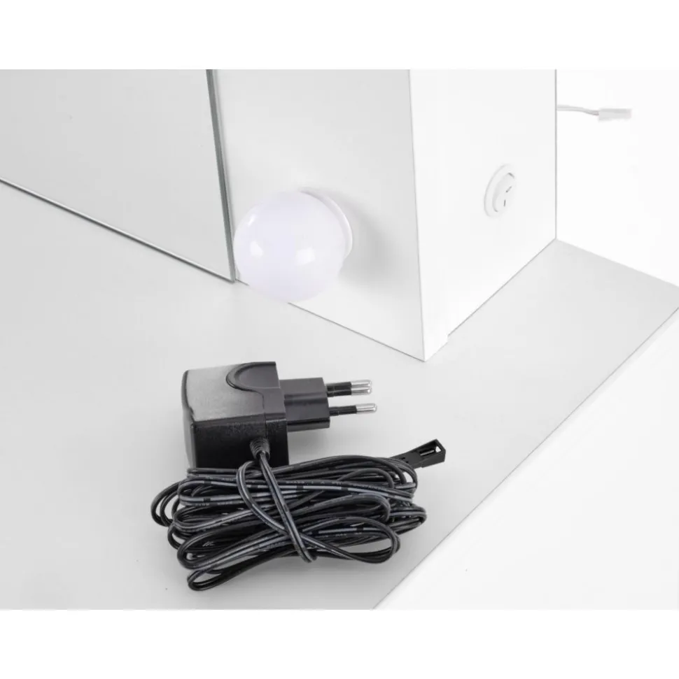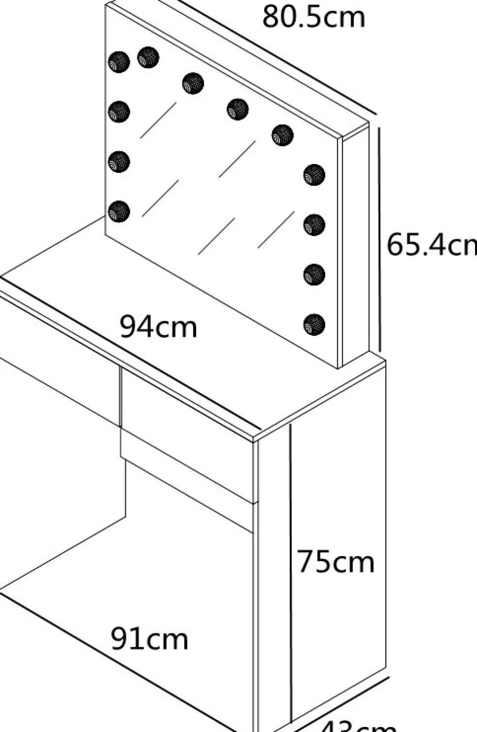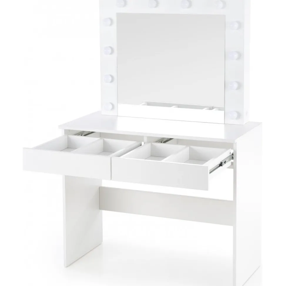Sminkbord av fanérad spånskiva med LED-belysning.