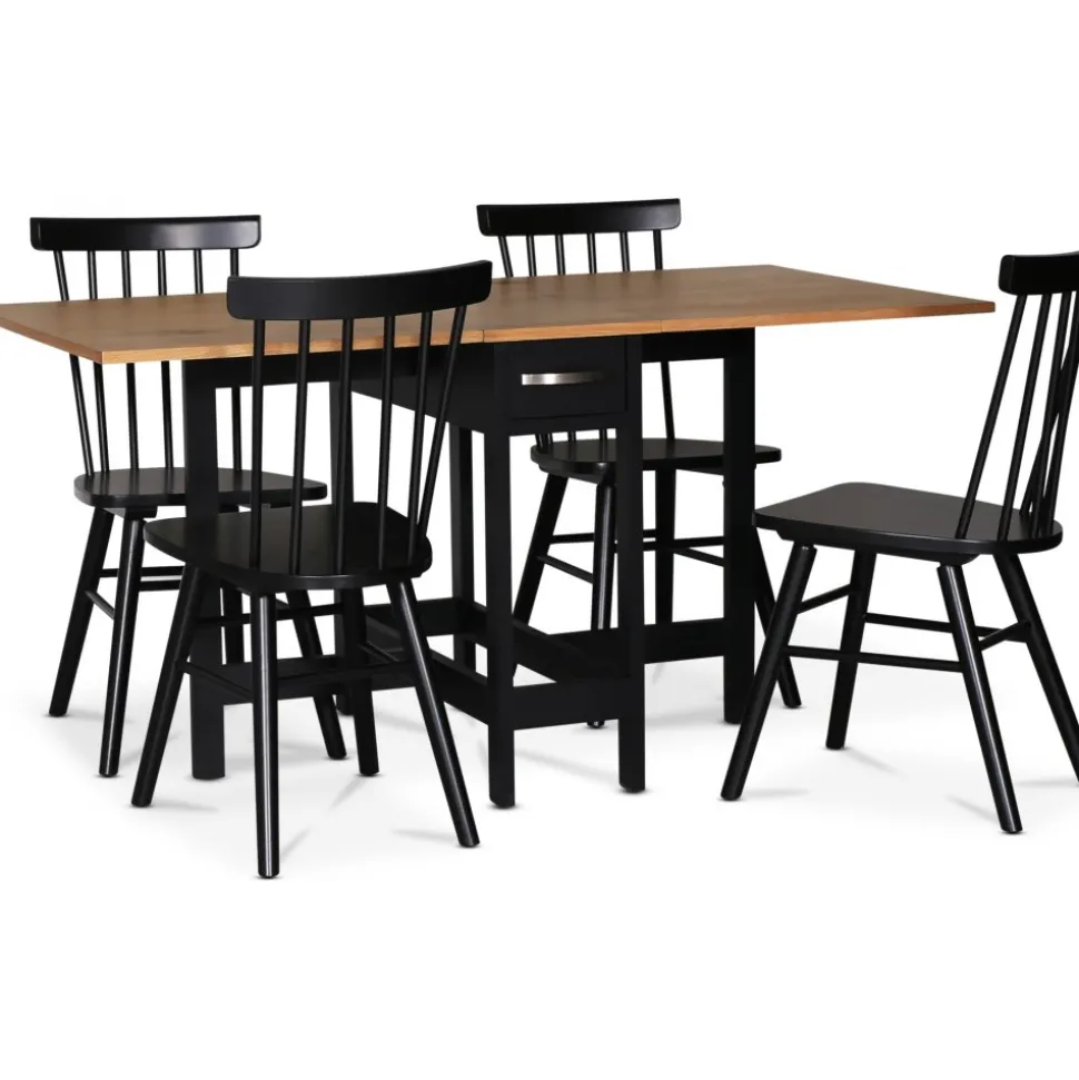 Fårö matgrupp; Fårö klaffbord Svart / Ek med 4 st svarta Orust pinnstolar: