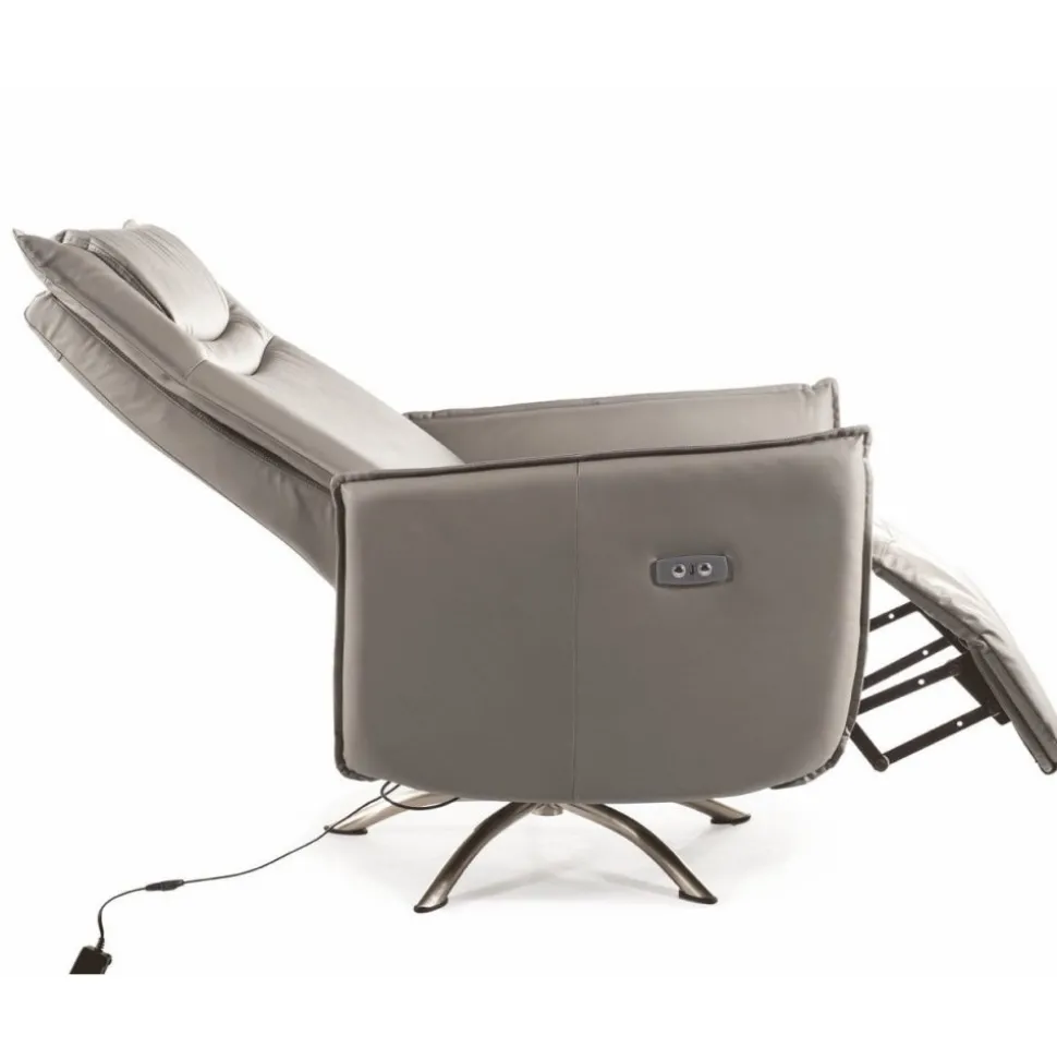 Modern och komfortabel eldriven . Klädd i ett läderliknande grått PU. Elektrisk enkel inställning till favorit position med hjälp av de två knapparna på sidan av fåtöljen.