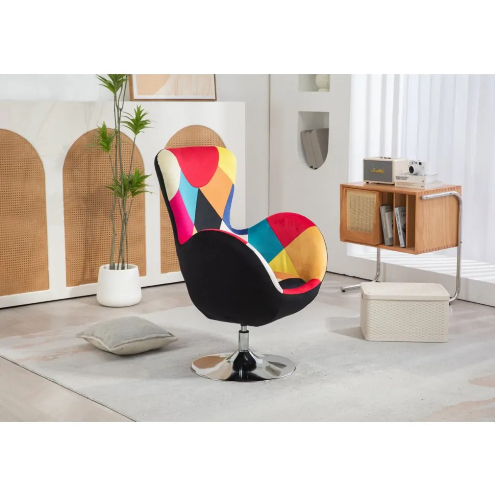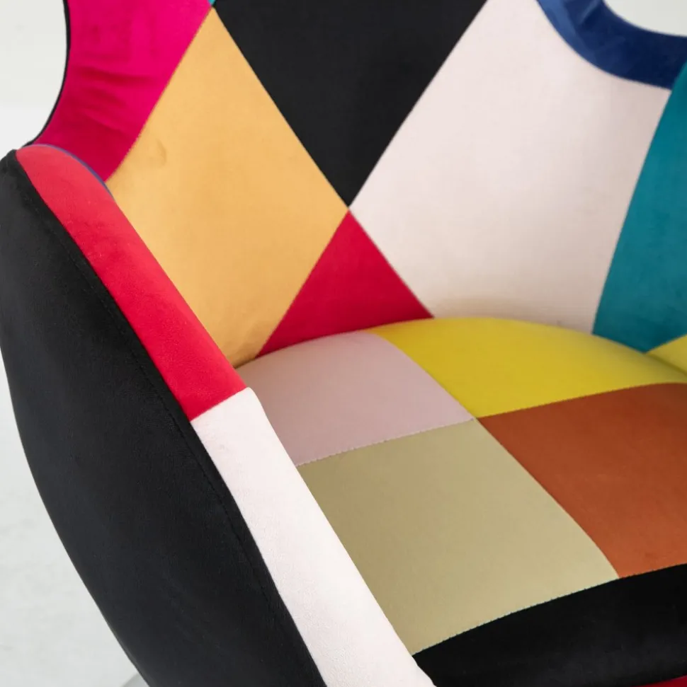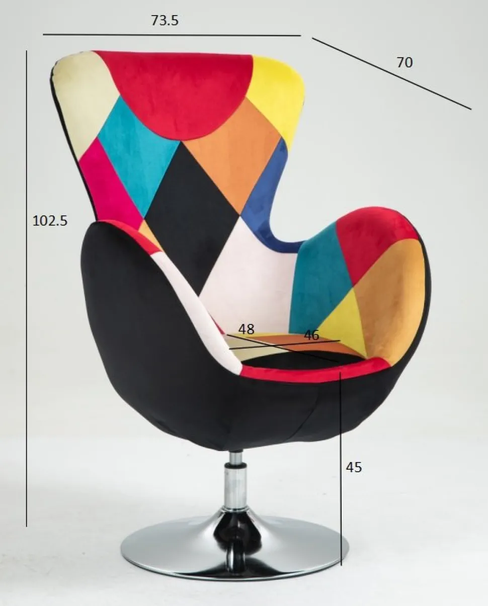 Bekväm med klädd sits i multifärgat tyg som kombinerar stil med hög sittkomfort. Den mjuka stoppningen gör fåtöljen perfekt för långa stunder av avkoppling, oavsett om du vill läsa en bok, titta på TV eller njuta av en kopp kaffe.