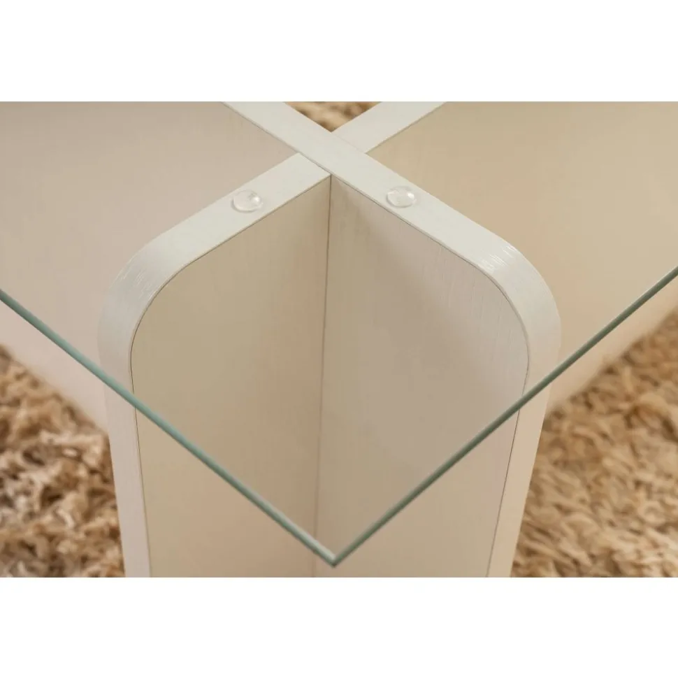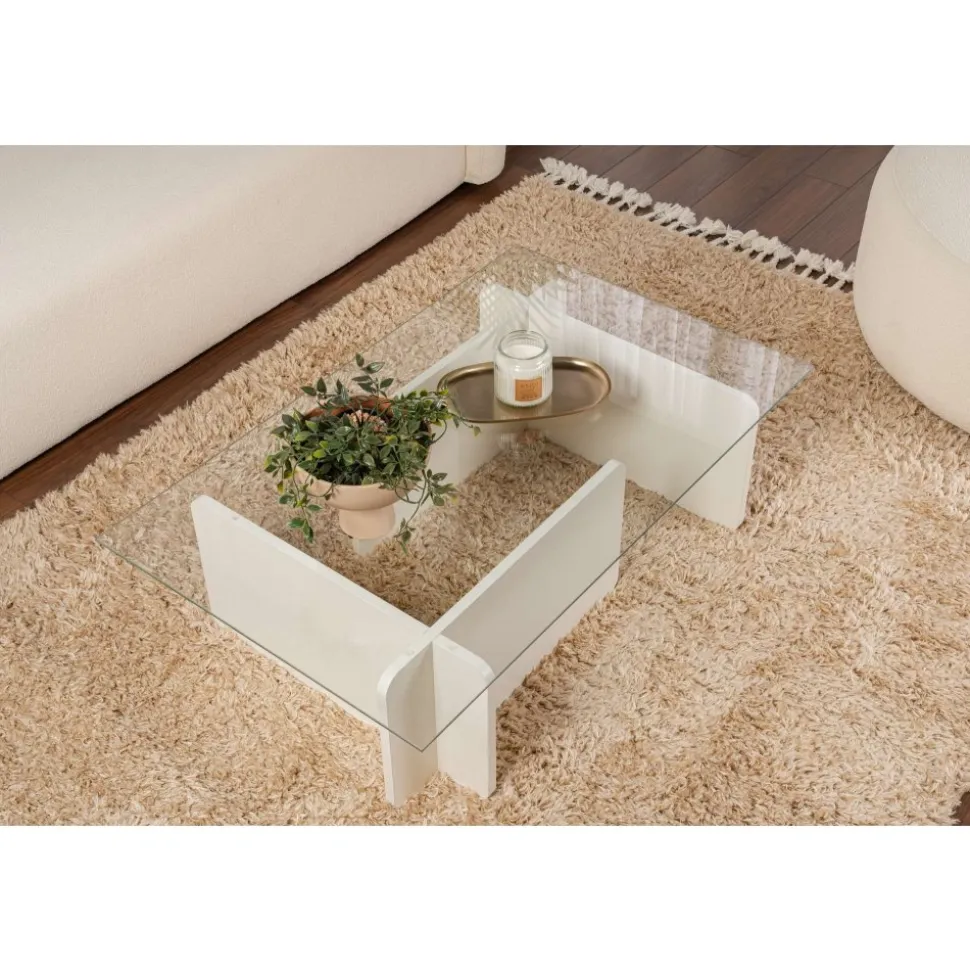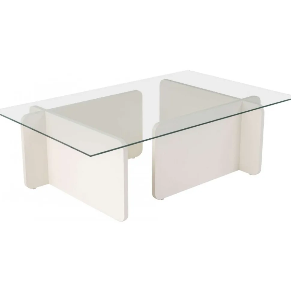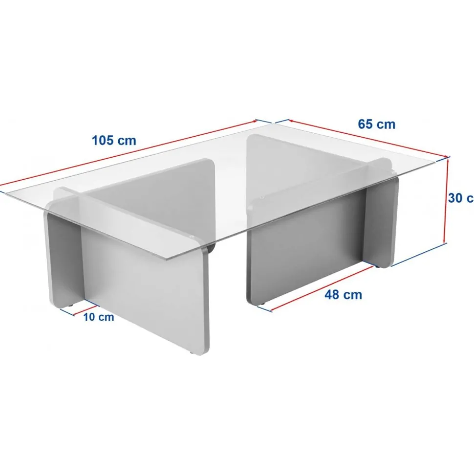 Soffbord av melaminbelagd spånskiva och tempererat glas.