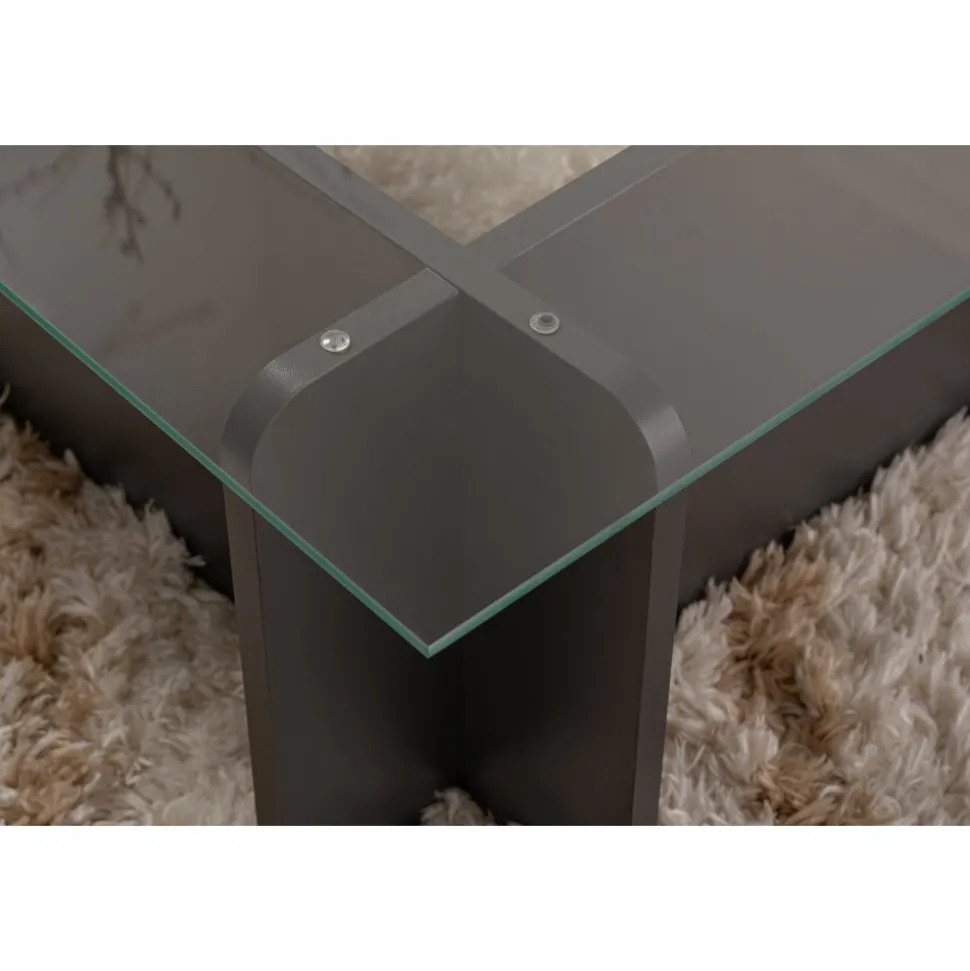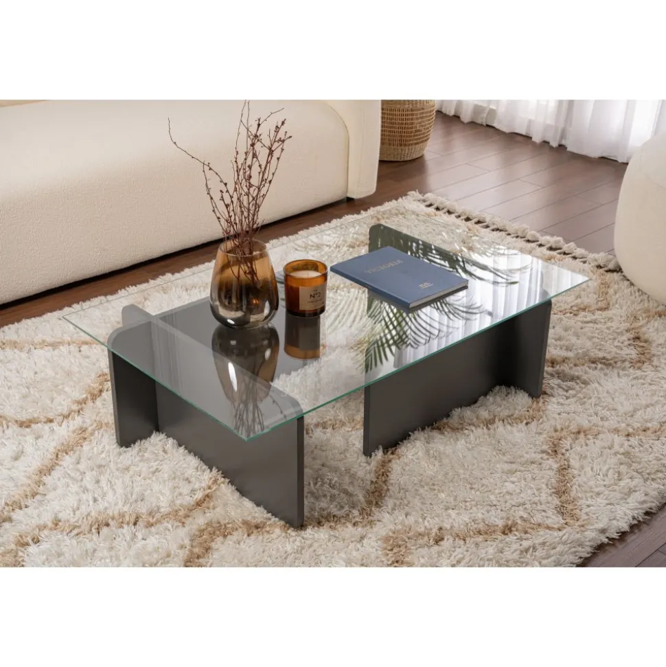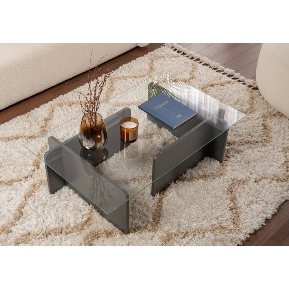 Lyft ditt med vårt fantastiska i antracit. Detta soffbord är tillverkat av härdat glas och melaminbelagd spånskiva och utstrålar elegans och sofistikering.