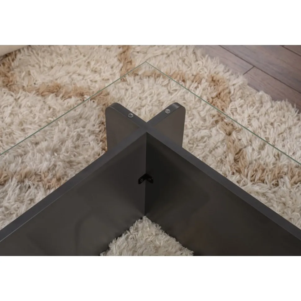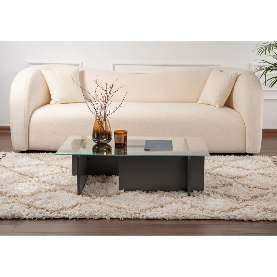 Vårt soffbord är designat med material av högsta kvalitet för att ge dig en möbel som kommer att hålla i många år framöver. Den härdade glasskivan är lätt att rengöra och underhålla, medan den melaminbelagda spånskivans ram ger en touch av modern stil till ditt utrymme.