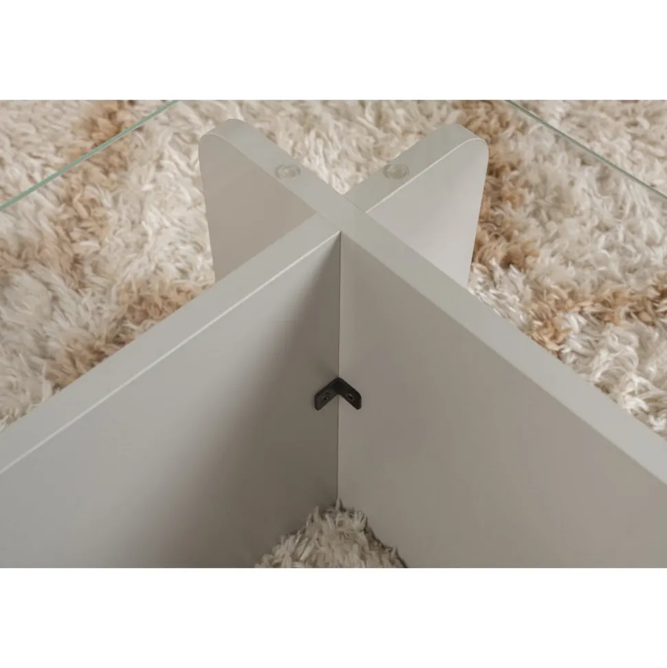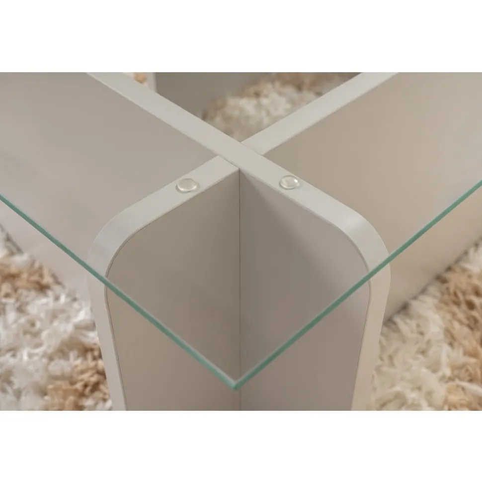- Material: Skiva i härdat glas, ram i melaminbelagd spånskiva