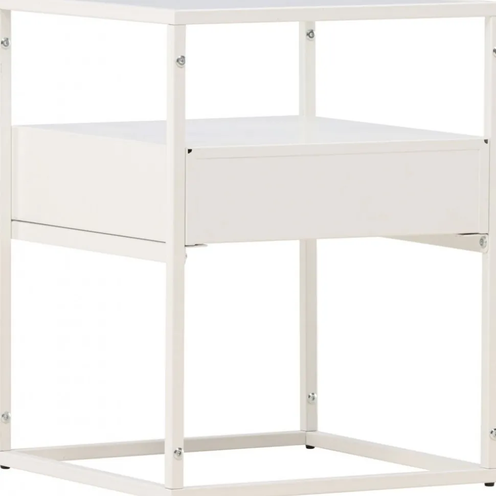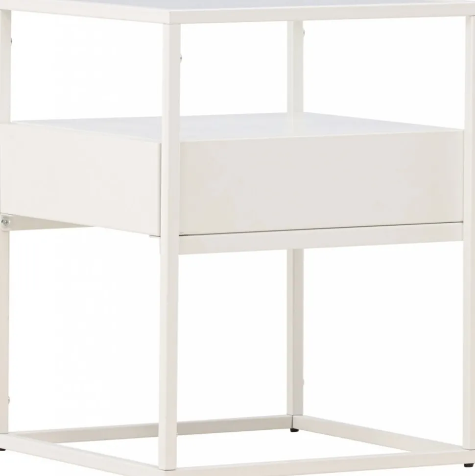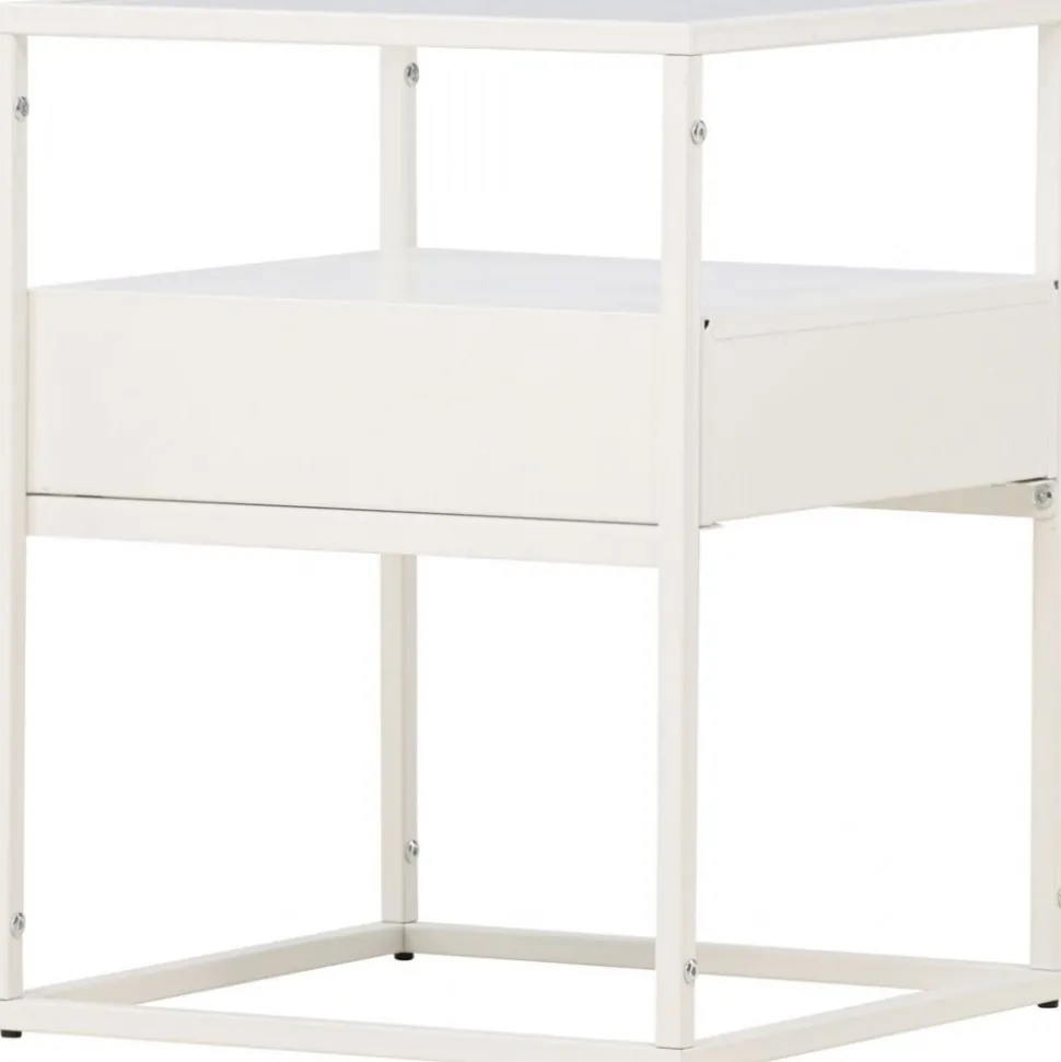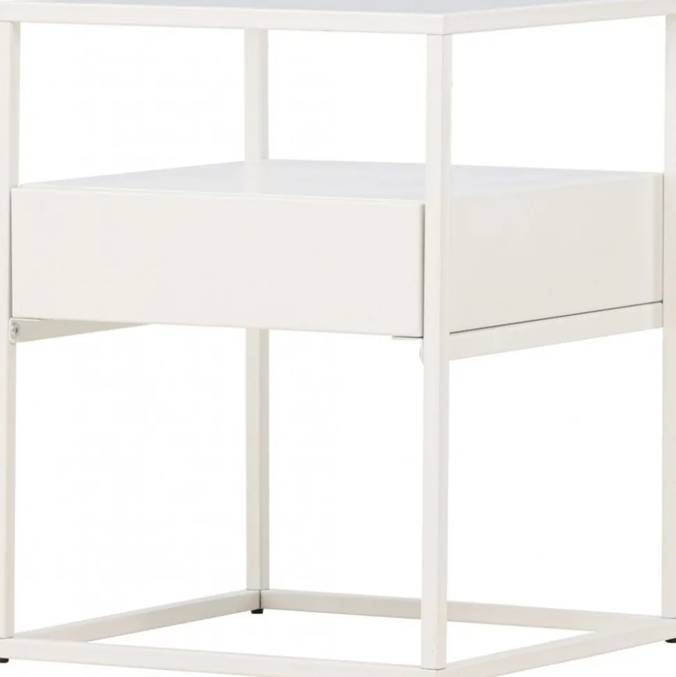 Rama in sängen med ett vackert vitt nattduksbord i glas och stål från vår serie Fortaleza! Det här vita sidobordet i nätt storlek ger inte bara en sofistikerad touch till din inredning utan reflekterar även din personliga stil och modemedvetenhet. Med en toppskiva i glas och en ramkonstruktion i vitt stål blir detta snabbt en favorit. Det här sidobordet är också utrustat med en diskret låda och hyllplan, vilket möjliggör både dold och synlig förvaring. Aldrig mer oordning – håll dina ägodelar organiserade och pryd med något vacker ljuslykta eller favoritbok för en personlig och hemtrevlig touch. Den smidiga storleken gör också att det går att använda till mycket. Placera som nattduksbord eller som ett sofistikerat i vardagsrummet – bara fantasin sätter gränser. Fortaleza sidobord finns även i en sotig svart färg om det passar just din inredningsstil bättre! Levereras omonterad.