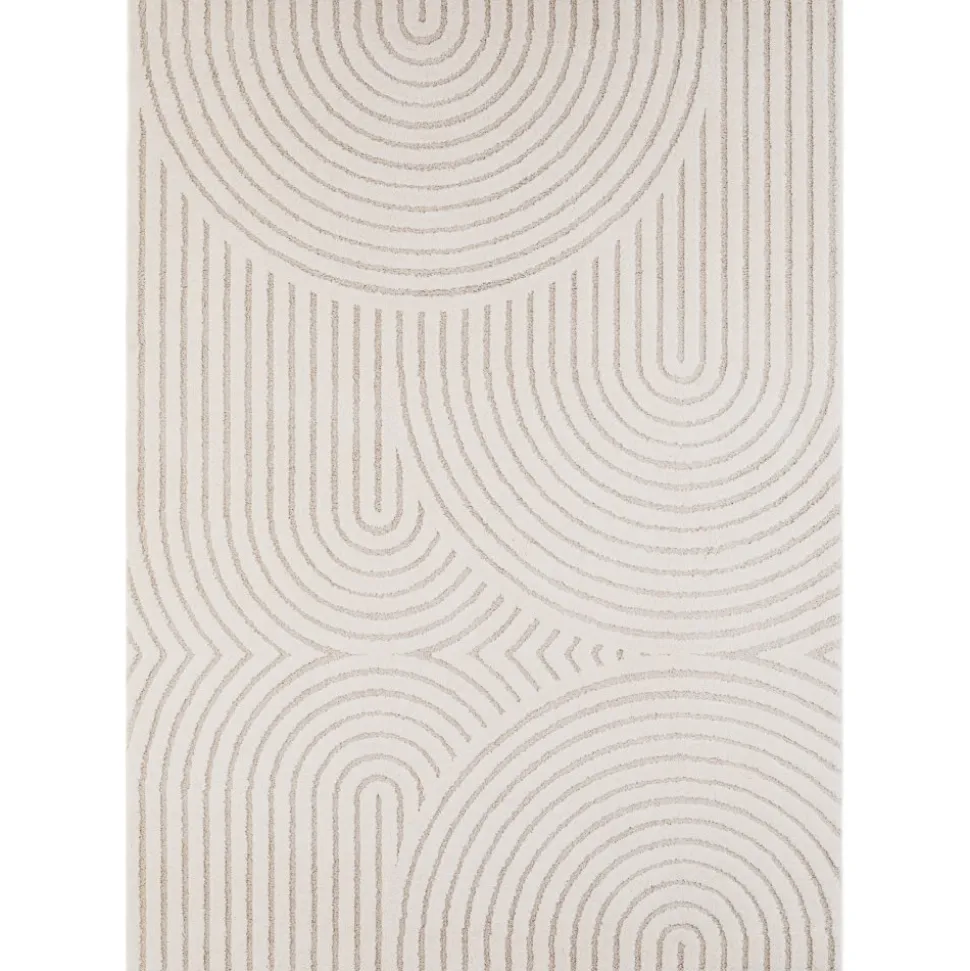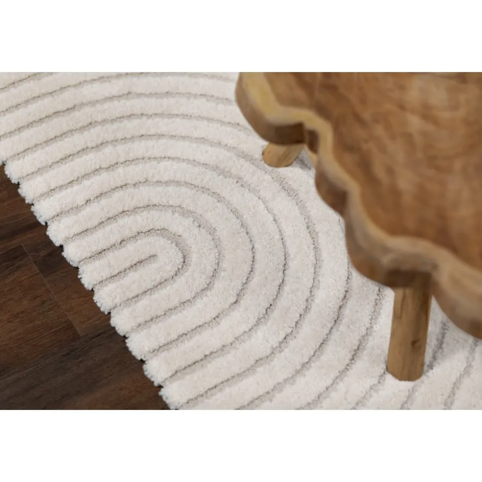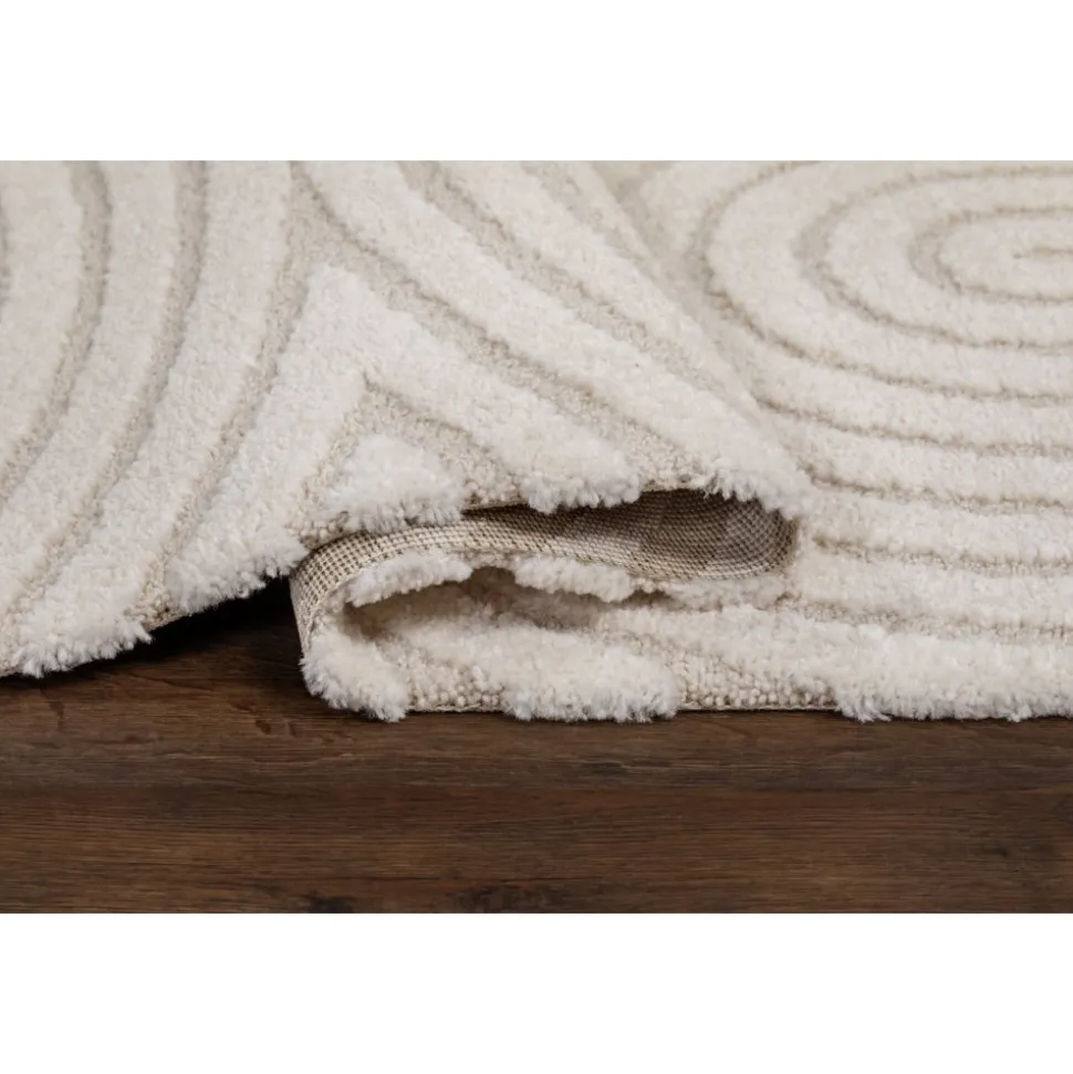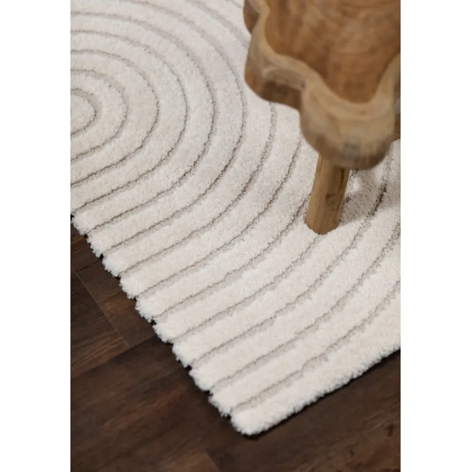 Genova Zen vit har en cremevit bottenfärg och ett mönster av halvcirklar i samma ton. Mönstret ger ett lugnt och behagligt intryck. Mattan är vävd med high/low-effekt, vilket innebär att mattan har olika lugghöjd som gör mönstret mer framträdande och effektfullt. Det är en mjuk som tack vare sina olika storlekar och sin stilrena look passar lika bra i sovrummet som vid din soffan.