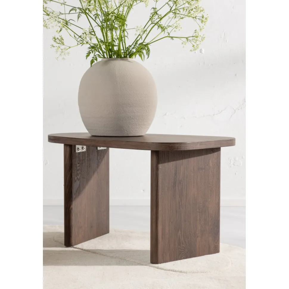 Grönvik är det perfekta sidobordet för att komplettera din inredning. Med sin vackra mocca färg och tillverkat av MDF-material är det en stilfull och funktionell möbel. Detta har en unik design som verkligen sticker ut. Dess kompakta mått på 45 x 70 x 40 cm gör att det inte tar upp mycket utrymme, samtidigt som det erbjuder gott om yta för att placera dina föremål och dekorera efter dina önskemål. Med sin skandinaviska design passar Grönvik in i olika inredningsstilar och ger en modern touch till ditt hem. Den eleganta och minimalistiska utformningen ger en stilren och fräsch känsla. Grönvik-sidobordet är inte bara snyggt att titta på, det är också praktiskt. Du kan enkelt placera din bok, kopp kaffe eller andra föremål på bordet och ha dem inom räckhåll. Lägg till Grönvik i ditt hem och njut av dess unika design och funktionella egenskaper varje dag. Detta sidobord kommer definitivt att bli en favorit i ditt hem och ge en extra touch av stil och elegans. Levereras omonterad.