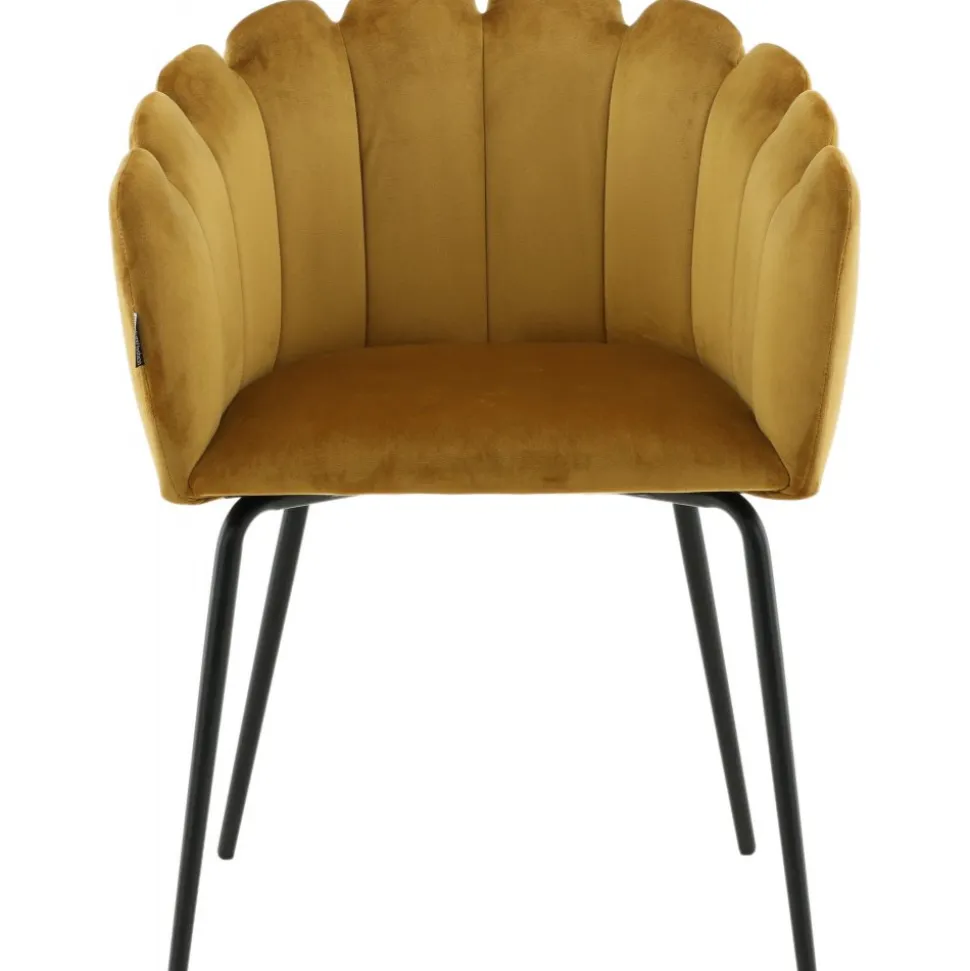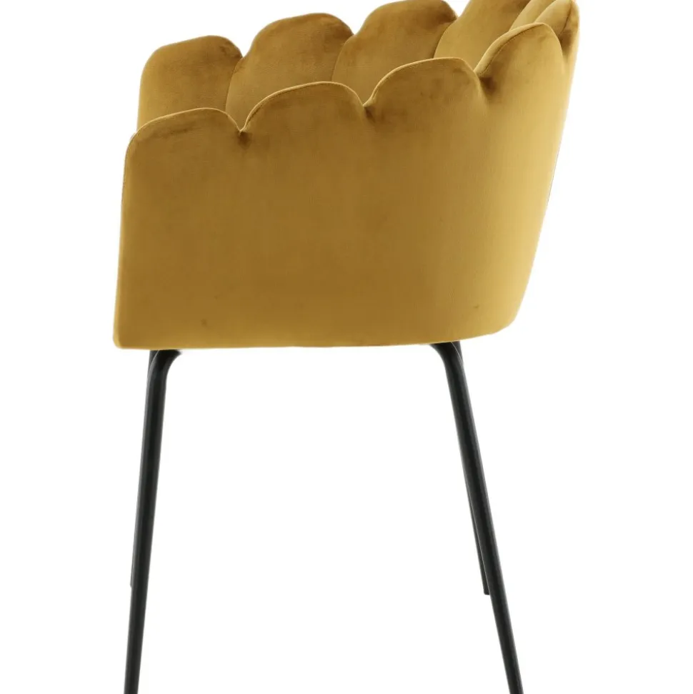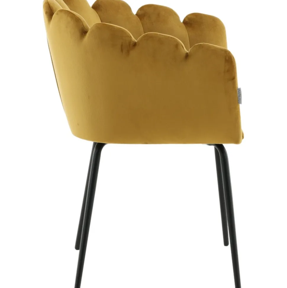 Karmstol av metall och plywood, klädd med polyestertyg.
