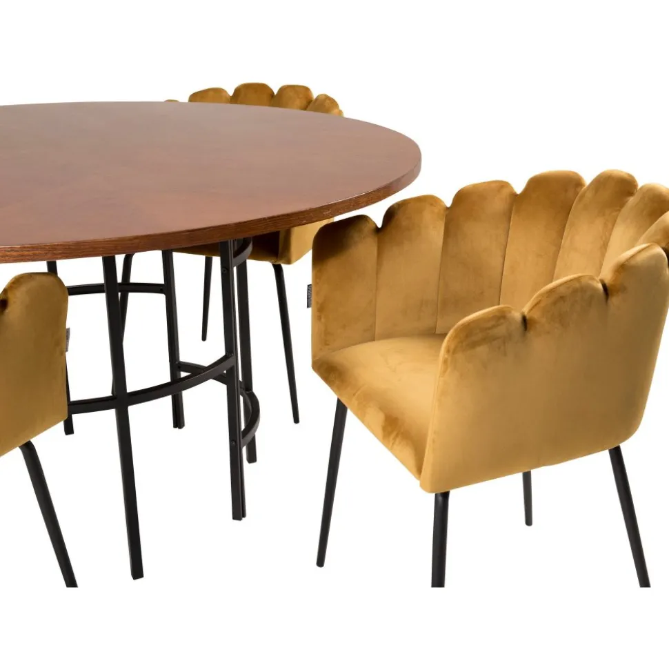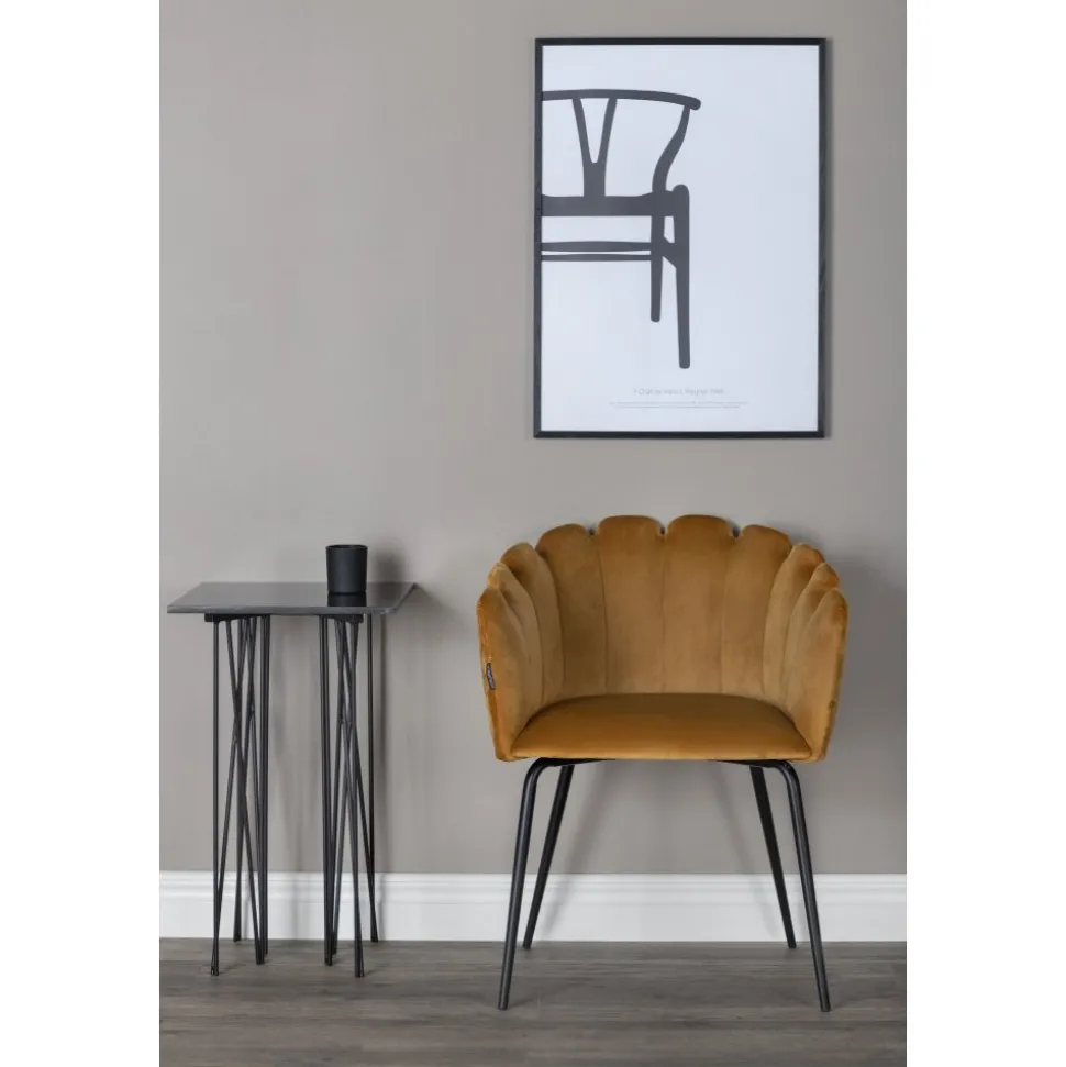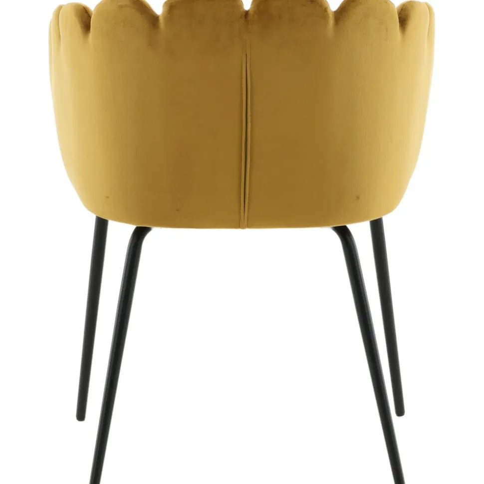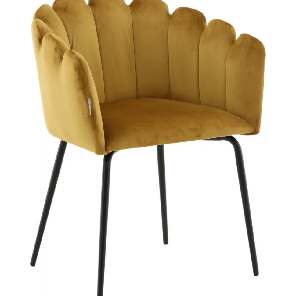 Karmstol av metall och plywood, klädd med polyestertyg.
