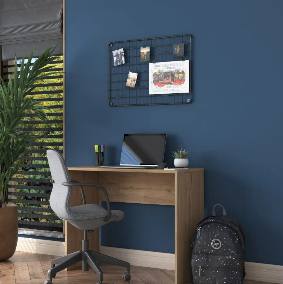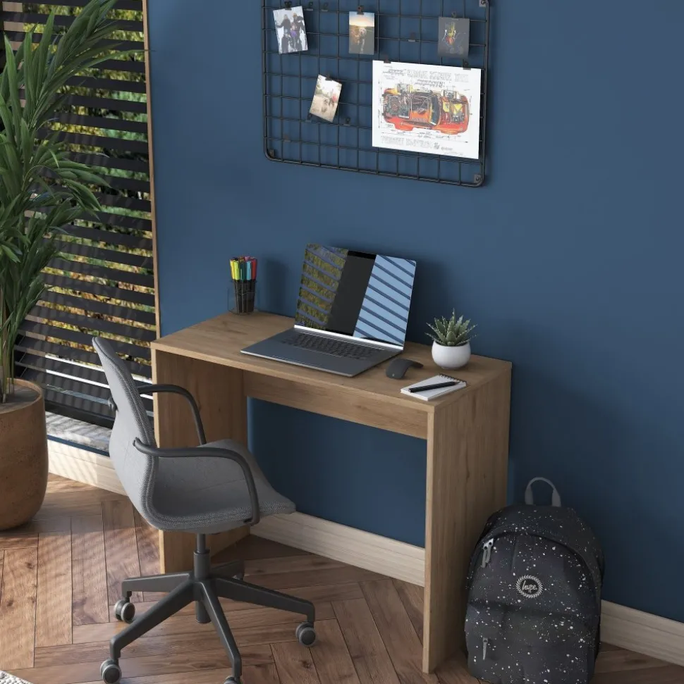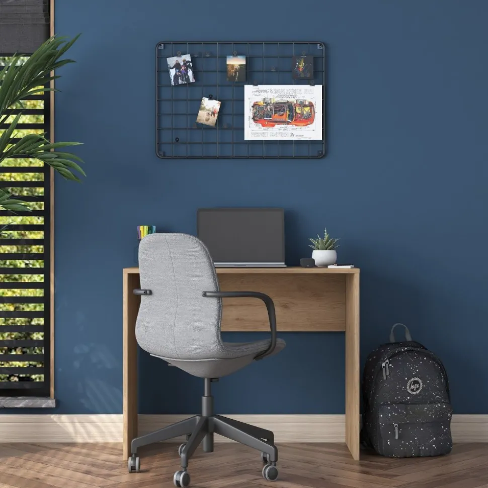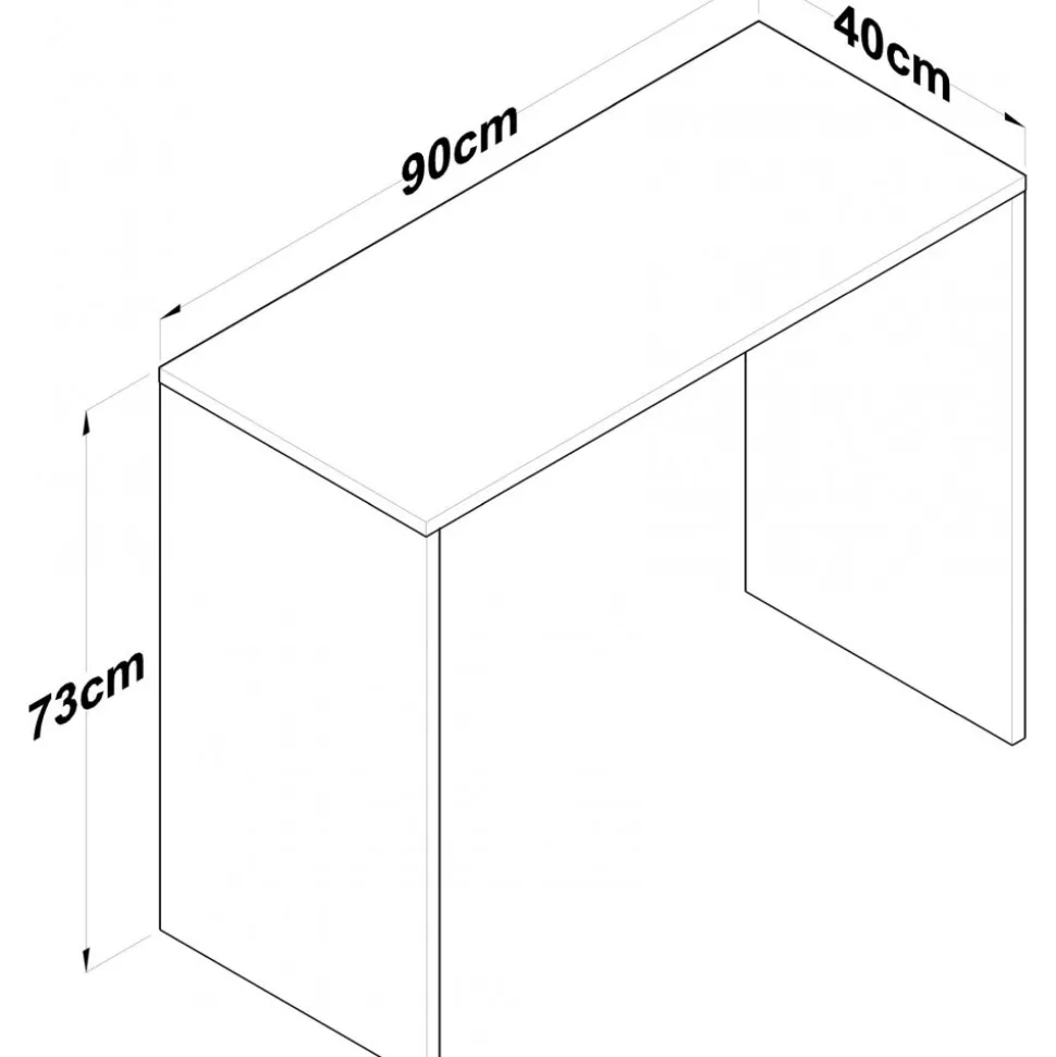 Skrivbord av melaminbelagd spånskiva.
