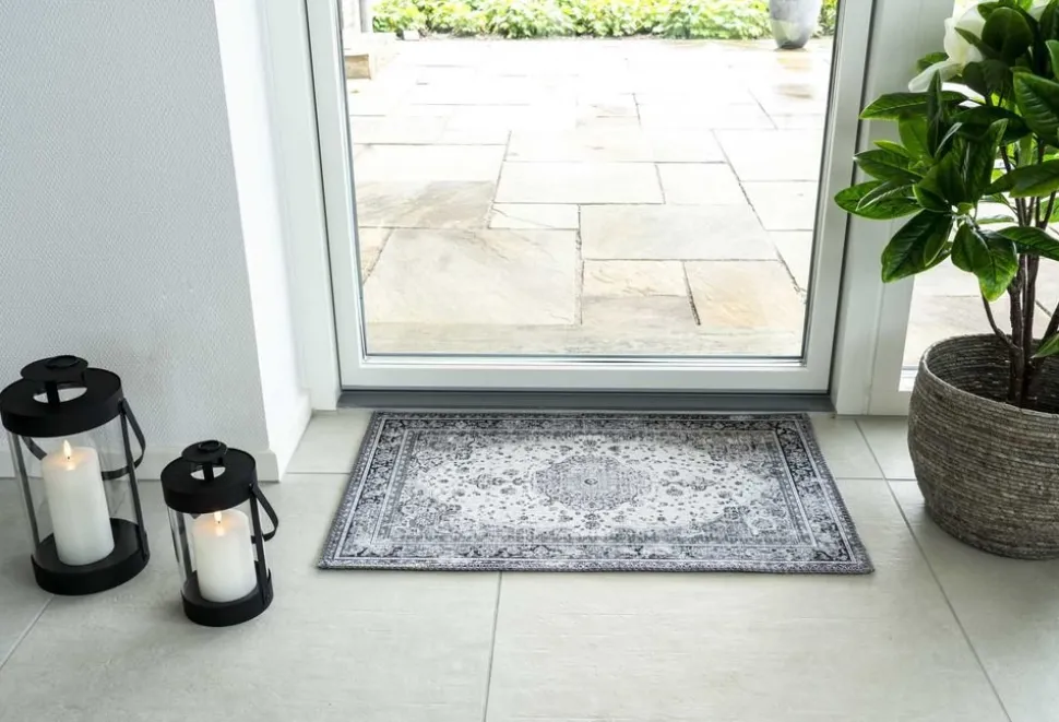 Dörrmatta i svart och vitt.