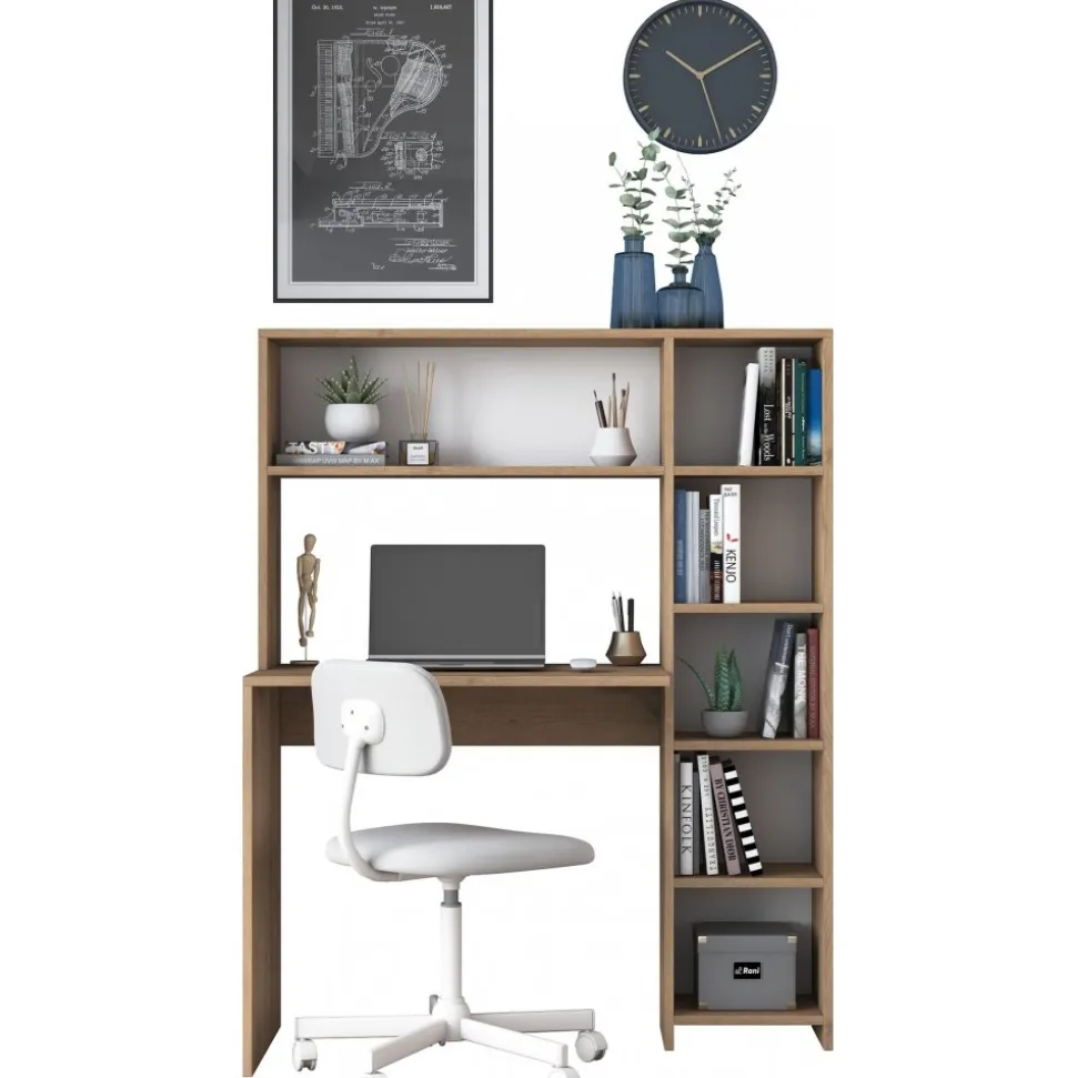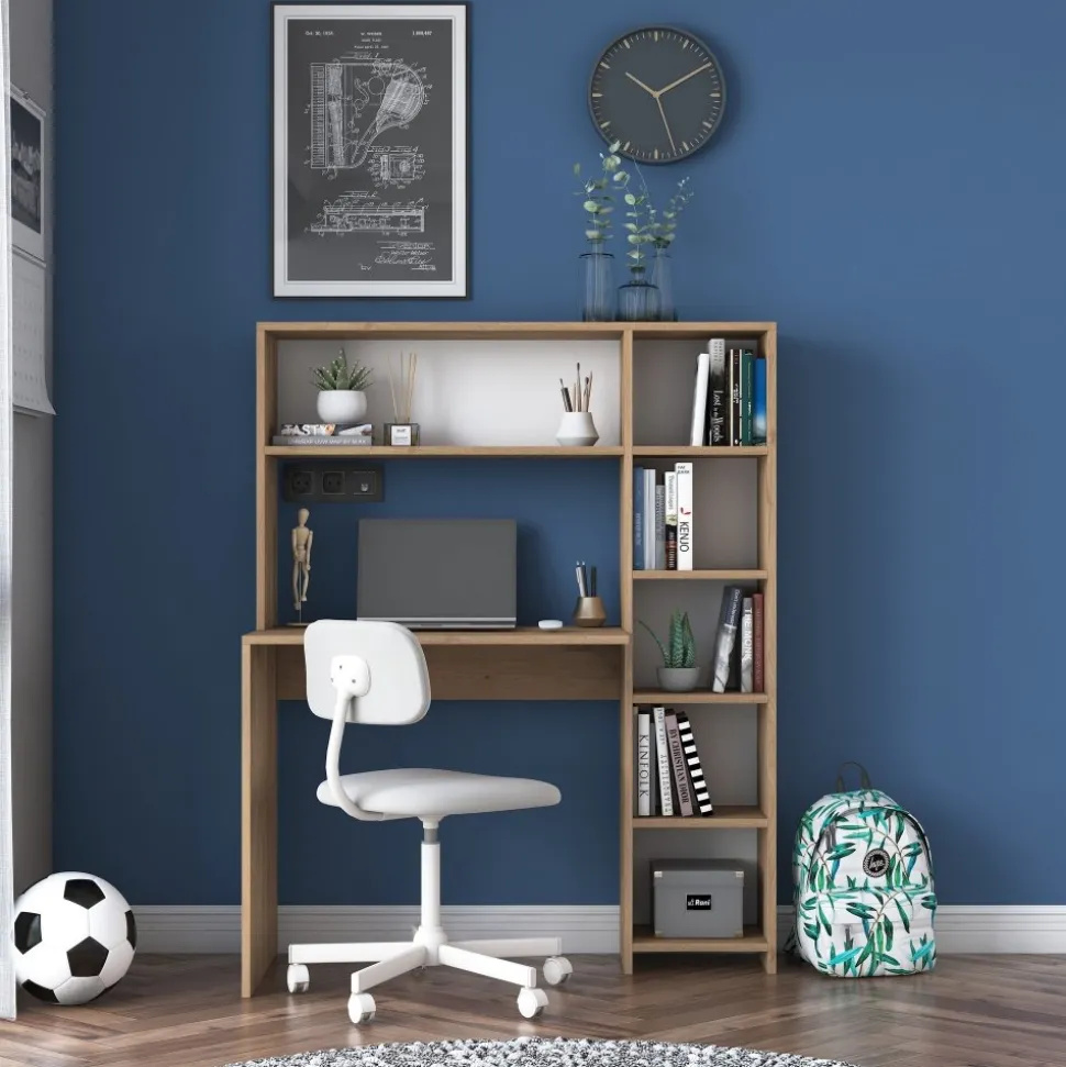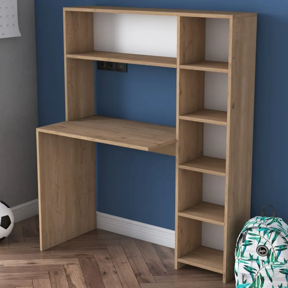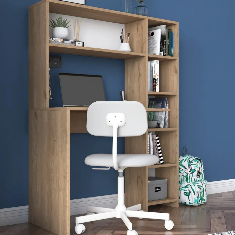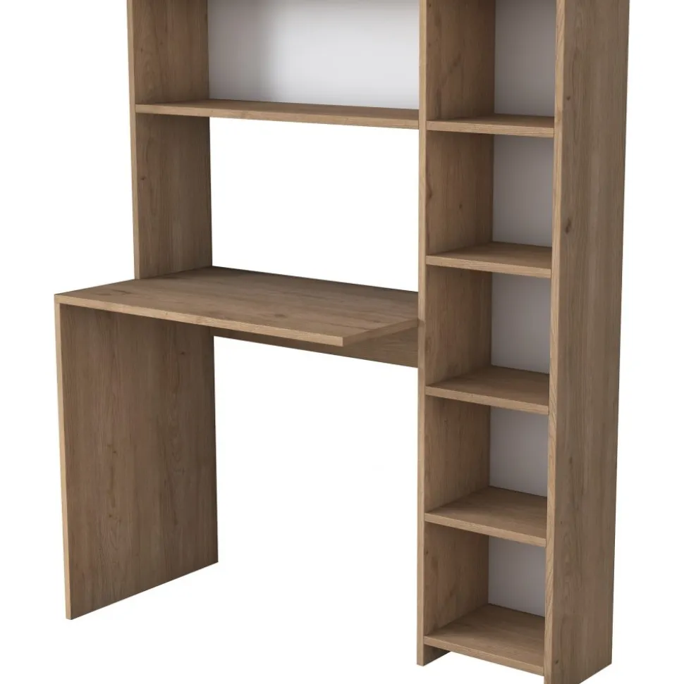 Skrivbord av melaminbelagd spånskiva.