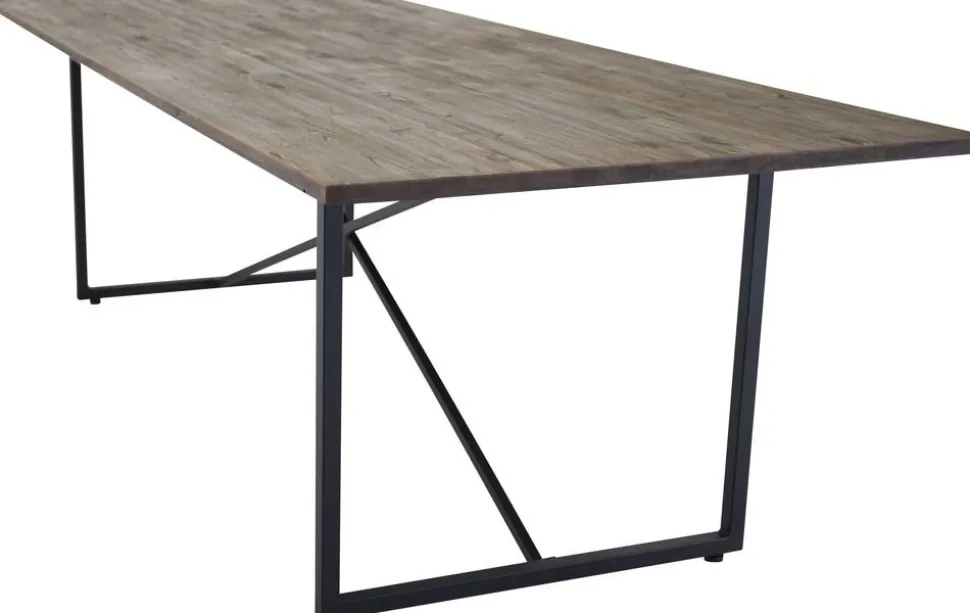 Stort med bordsskiva av teak, brun vintage i färgen. Underrede i svart metall.