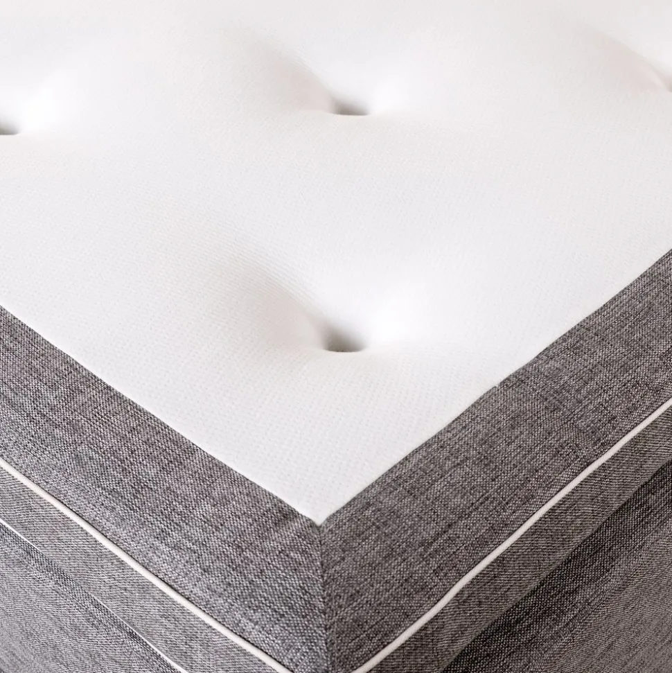 Hilton levereras med en 9 cm hög Prestige bäddmadrass som innehåller en polyeterkärna och fibervadd. Bäddmadrassen är både pikerad och kuvertsydd med keder runt om för att få rätt känsla och utseende.