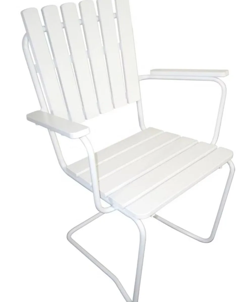 Ge din uteplats ett lyft med Holmsund en stilren stol med armstöd som kombinerar skandinavisk design med slitstarka material. Den vita finishen och det rena formspråket skapar en modern, inbjudande känsla som passar i alla typer av utomhusmiljöer från balkongen till trädgården.