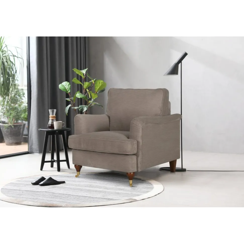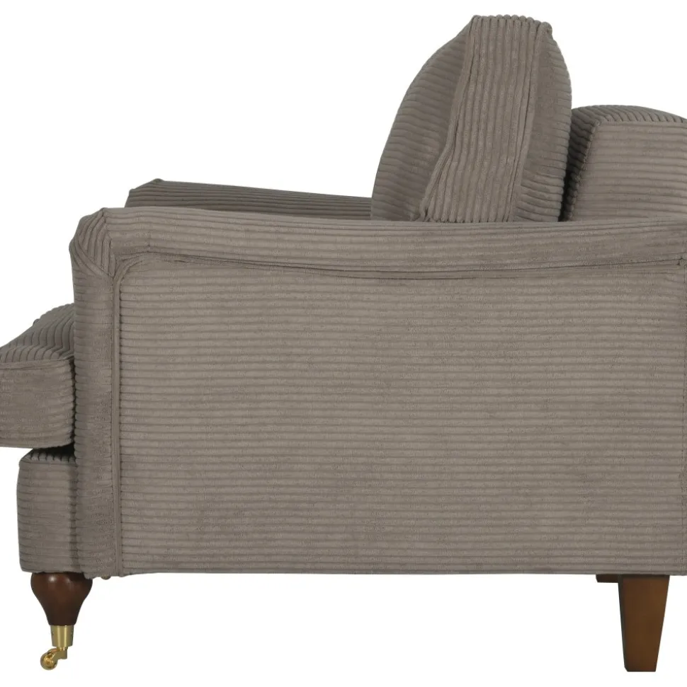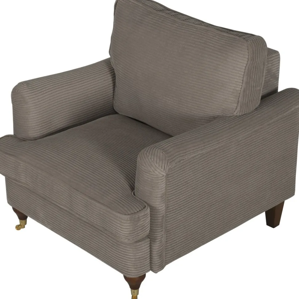 Alla våra Howardfåtöljer har en gedigen konstruktion för god kvalitet och mycket lång livslängd. Howard Watford har mässingsfärgade hjul på frambenen med tillhörande skyddande koppar. Klädseln är i manchestertyg och sitt- och ryggdynor är löstagbara.