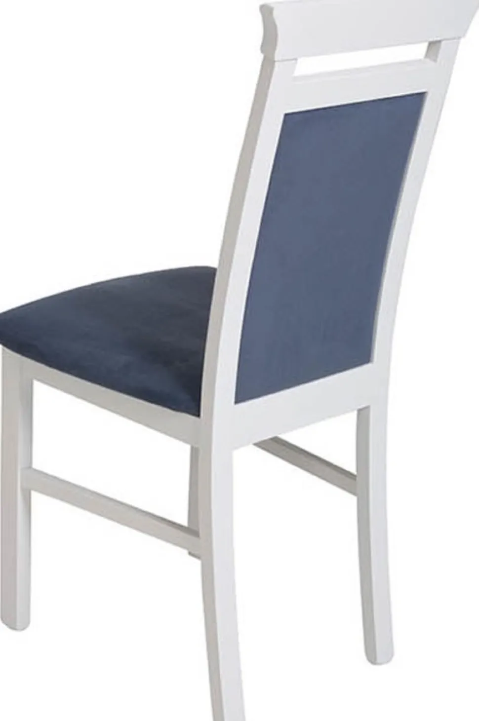 Matstol av trä med klädsel av tyg.