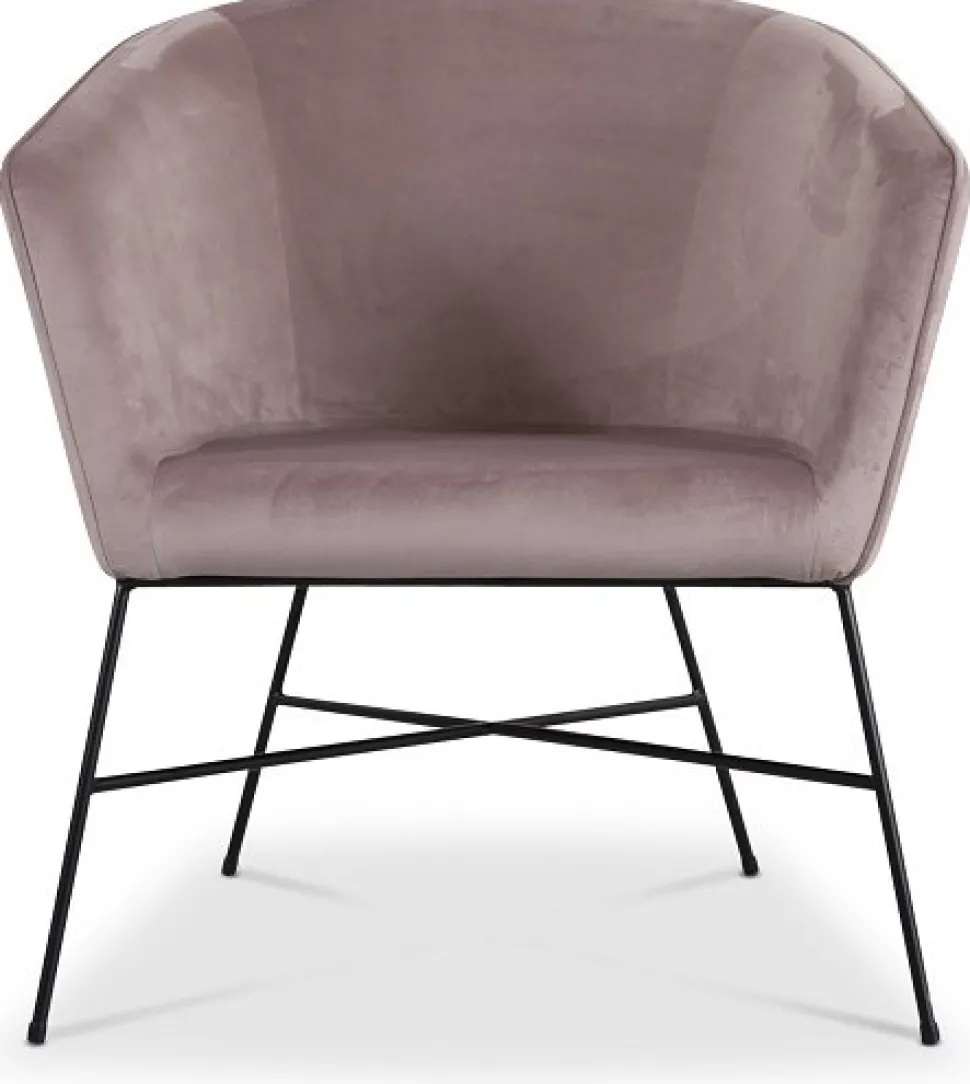 Fåtölj Isabelle har ett retroutseende, god sittkomfort och ett sammetstyg. Svart pulverlackat metallunderrede.