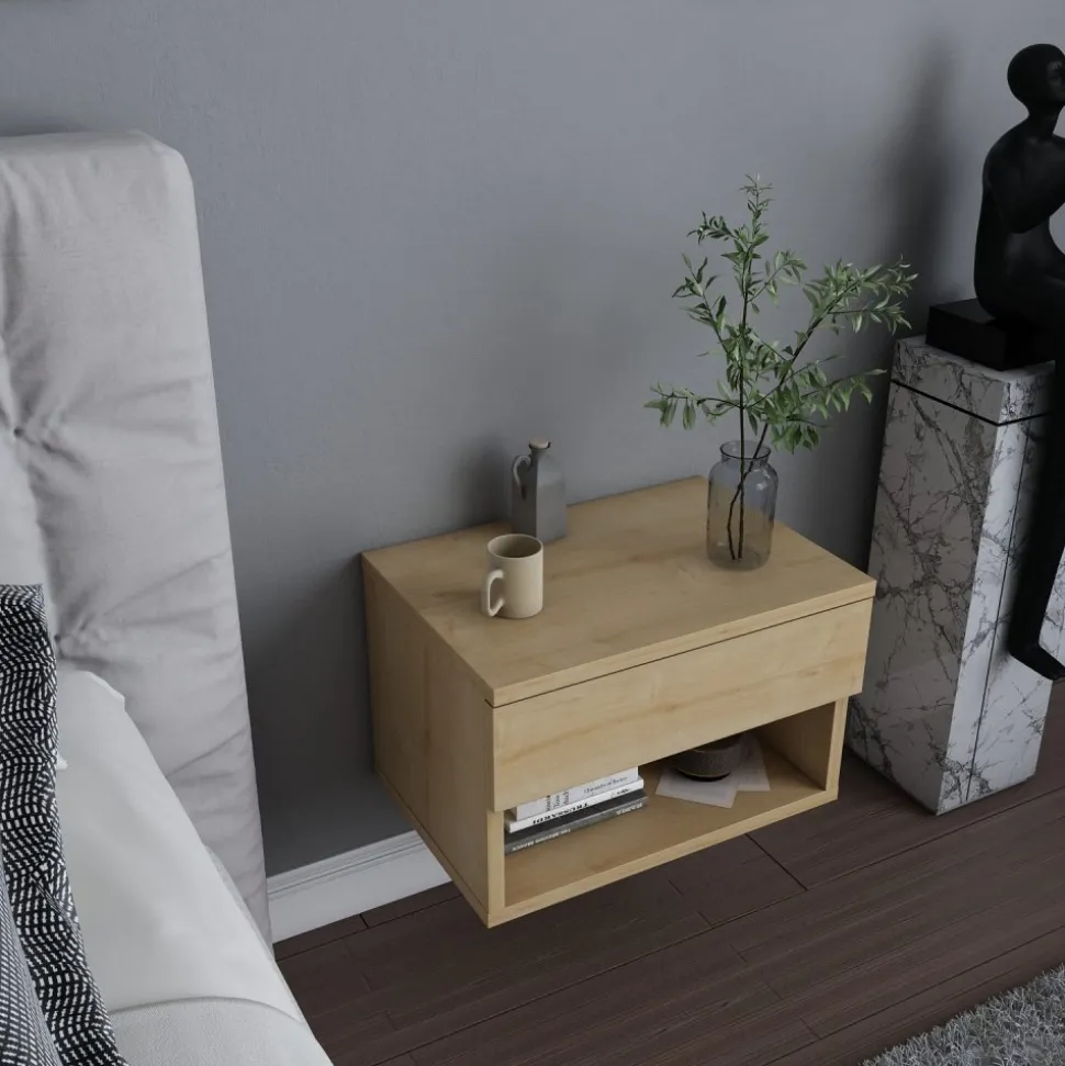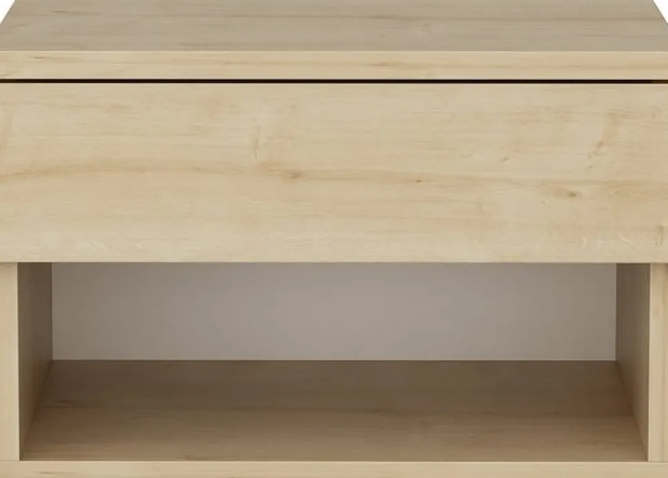 Sängbord av melaminbelagd spånskiva.