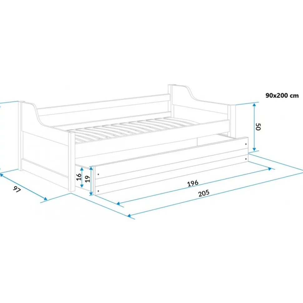 En bekväm och praktisk soffa som är perfekt för barnens läs- och spelstunder och med en utdragbar undertill för extra sovplats. Tack vare storleken på 90 x 200 cm fungerar den även utmärkt som en gästsäng.