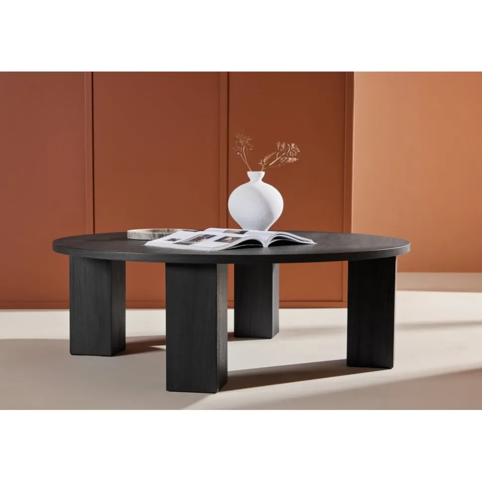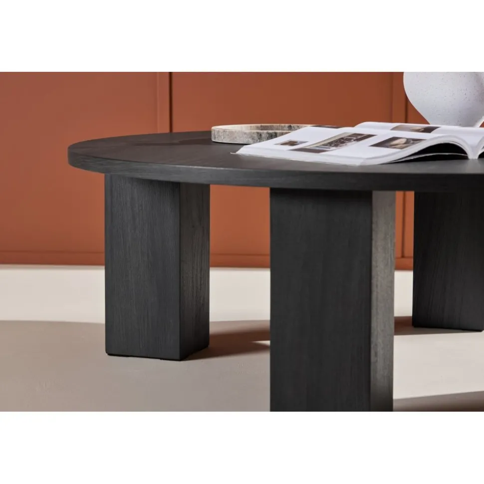 Skapa en sofistikerad och modern atmosfär i ditt med soffbordet Juno, en stilren möbel med en imponerande diameter på 120 cm. Med sin eleganta svarta finish blir Juno ett centralt och iögonfallande inslag i rummet, där funktionalitet och design möts i perfekt harmoni. Den generösa storleken gör Juno till ett idealiskt för att samla familj och vänner, samtidigt som det erbjuder gott om yta för både dekorationer och vardagsföremål. Den runda formen uppmuntrar till social interaktion och gör bordet enkelt att placera i olika typer av rum och möblemang. Juno är tillverkat med en elegant svart yta som ger bordet en tidlös och stilfull karaktär. Den svarta färgen skapar en känsla av djup och kontrast, vilket gör att bordet enkelt kan kombineras med olika inredningsstilar – från modern minimalism till klassisk elegans. Med sin robusta konstruktion och stilrena design är soffbordet Juno både en praktisk och estetisk lösning för ditt hem. Låt Juno bli hjärtat i ditt vardagsrum, där dess svarta färg och imponerande storlek skapar en inbjudande och elegant miljö för alla dina stunder av avkoppling och samvaro.
