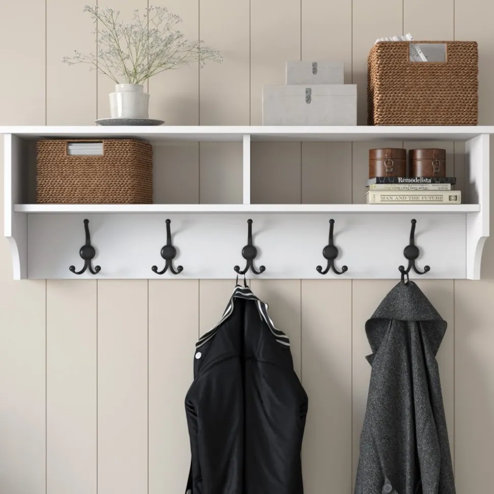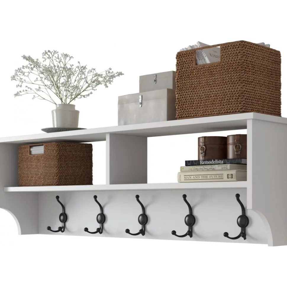 En funktionell som kombinerar smart förvaring med stilren design. Tillverkad av melaminbelagd spånskiva för en hållbar och lättskött yta. Den vita färgen gör att den passar i de flesta hem och hallmiljöer.