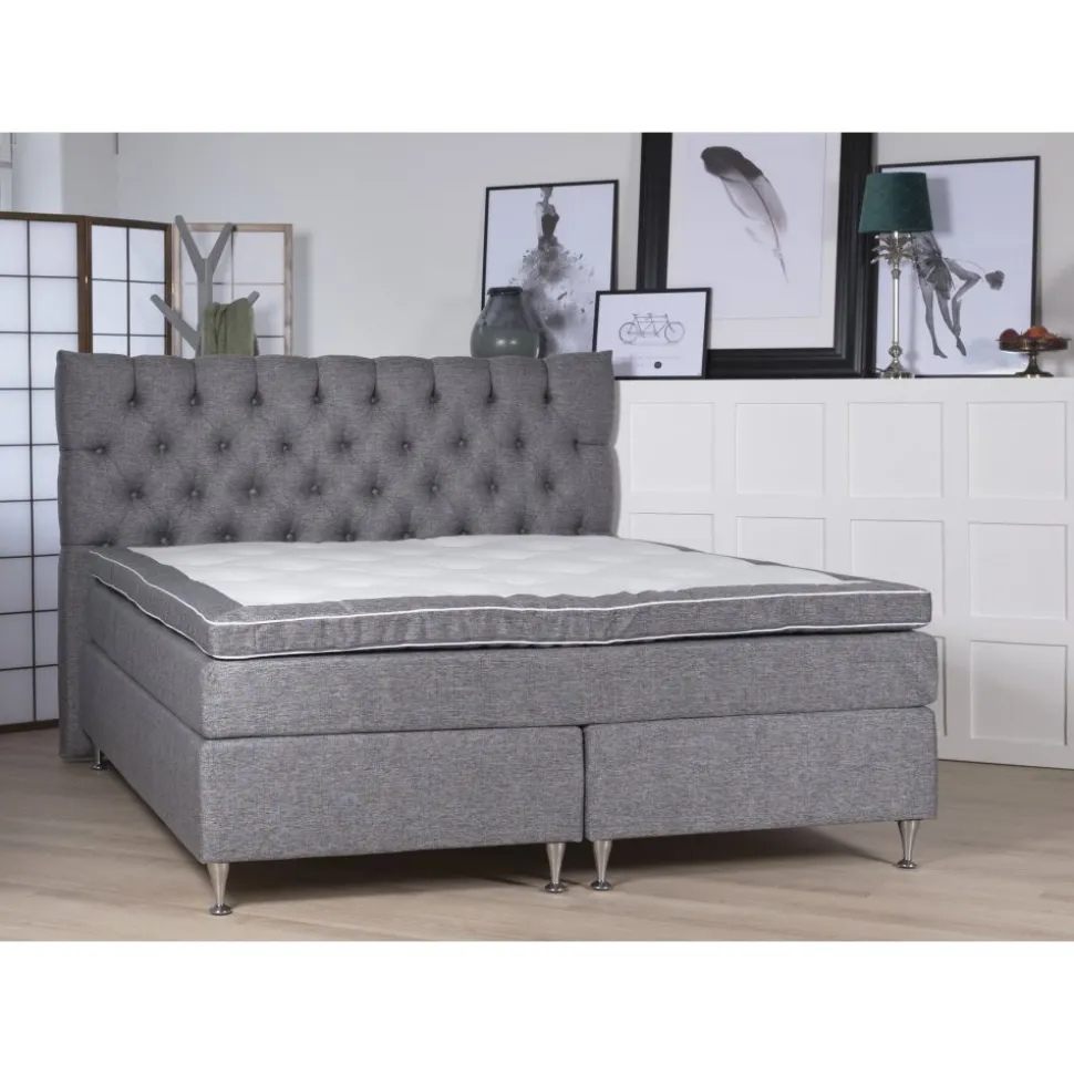 Ovanpå ligger en resårmadrass med 5-zons pocketfjädrar, som ger ett anpassat stöd för kroppens olika delar.