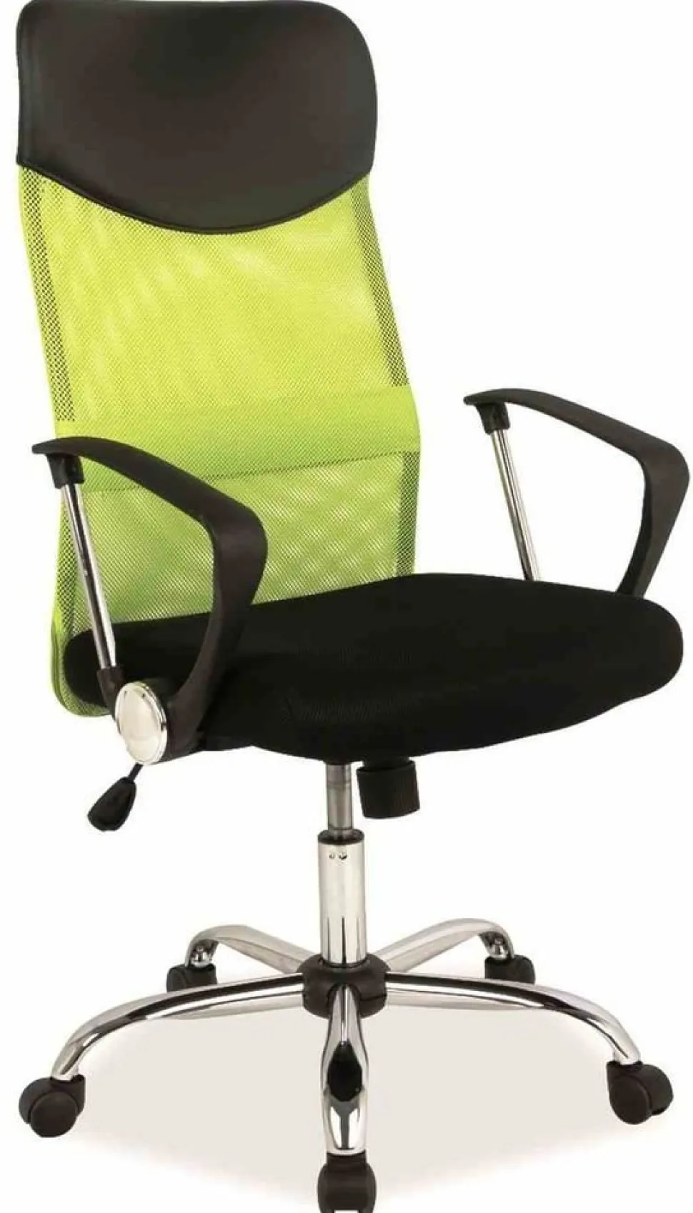En mysig med en modern design. Underredet är tillverkat av kromad metall och sitsen är klädd med ett behagligt nättyg. Ryggstödet är av en blandning av nättyg och konstläder. Stolen har tilt funktion och höjden är lätt justerbar med hjälp av spaken under sitsen. Stolen är även lätt att förflytta tack vare hjulen på stjärnfoten.