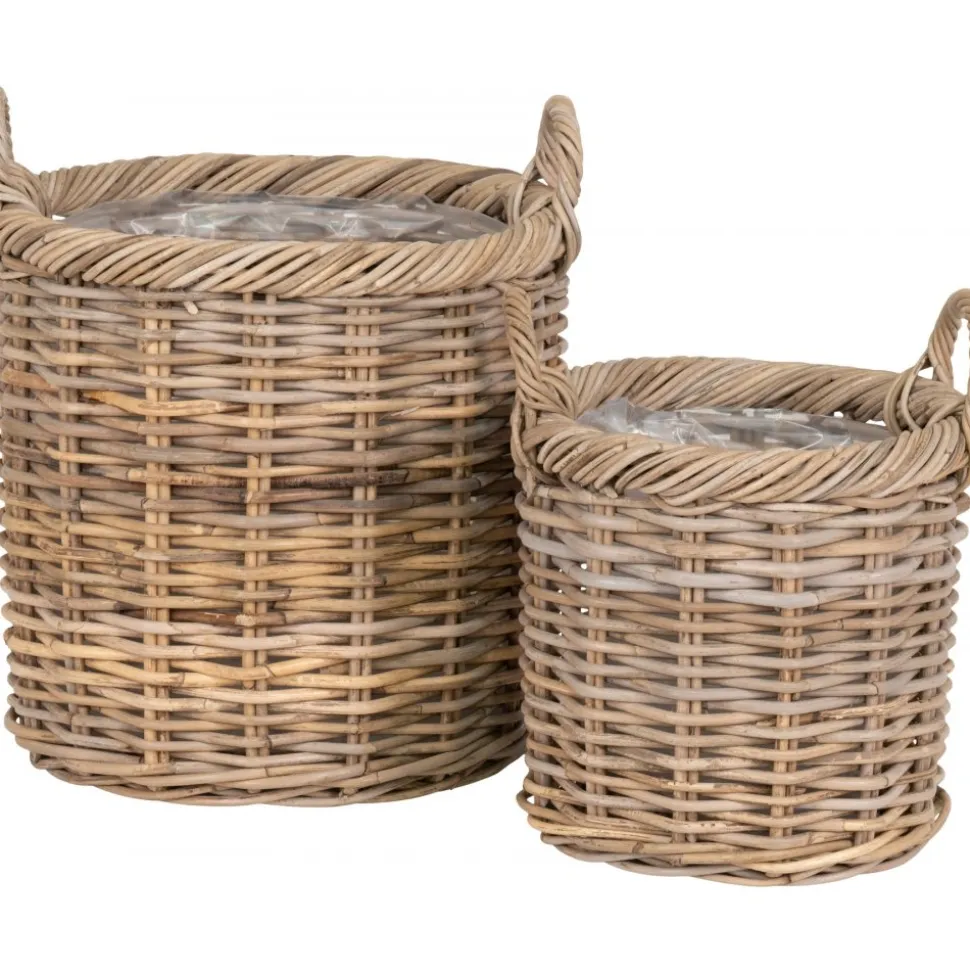 Korgset av kubu rotting med plastbeklädd insida. Set med 2 st. Levereras monterad.