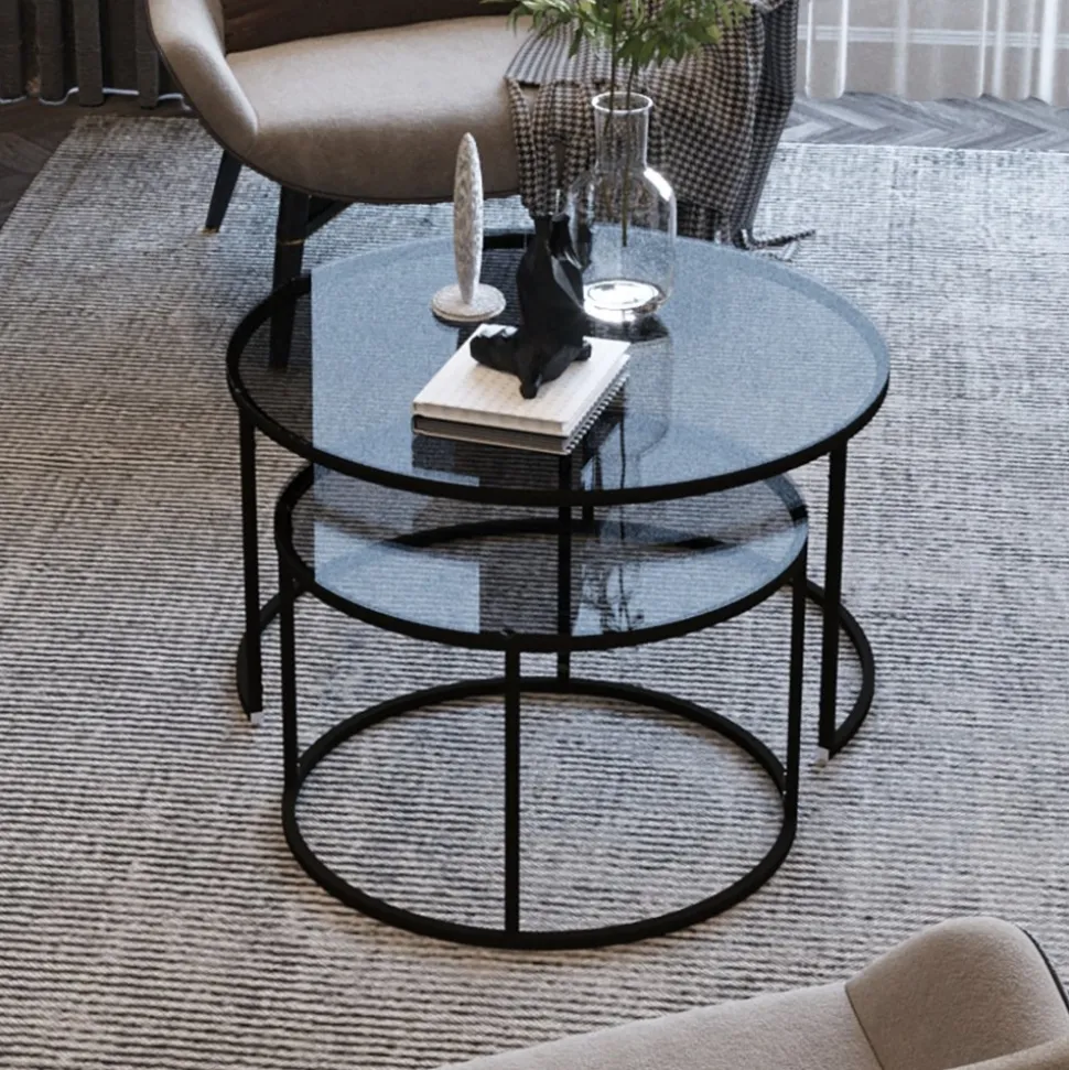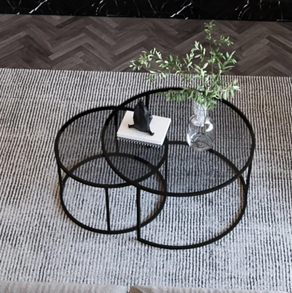 Satsbord av metall med bordsskiva av tempererat glas. 2 st.