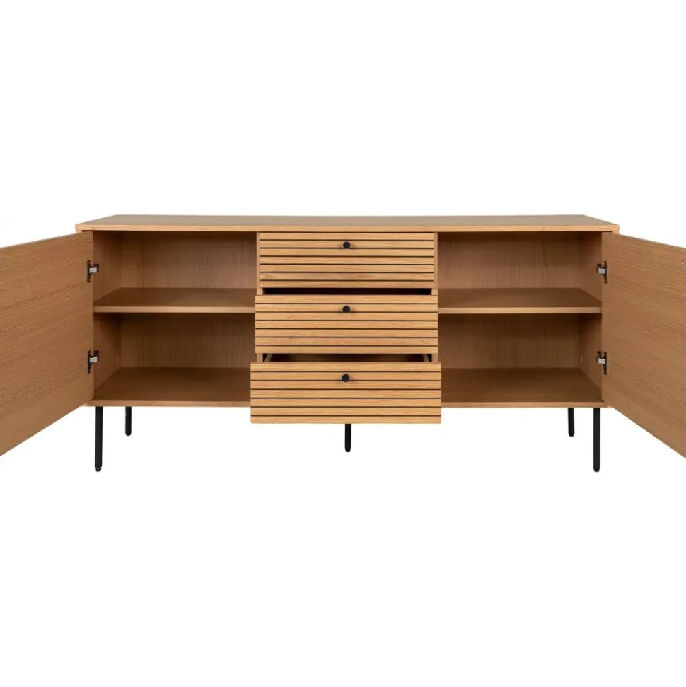 Skänk av MDF, ekfáner och stål. Levereras omonterad.