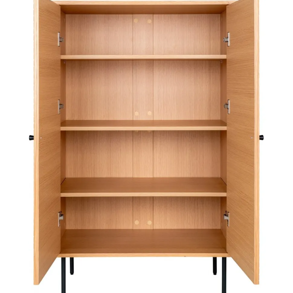 Skåp av MDF, ekfáner och stål. Levereras omonterad.