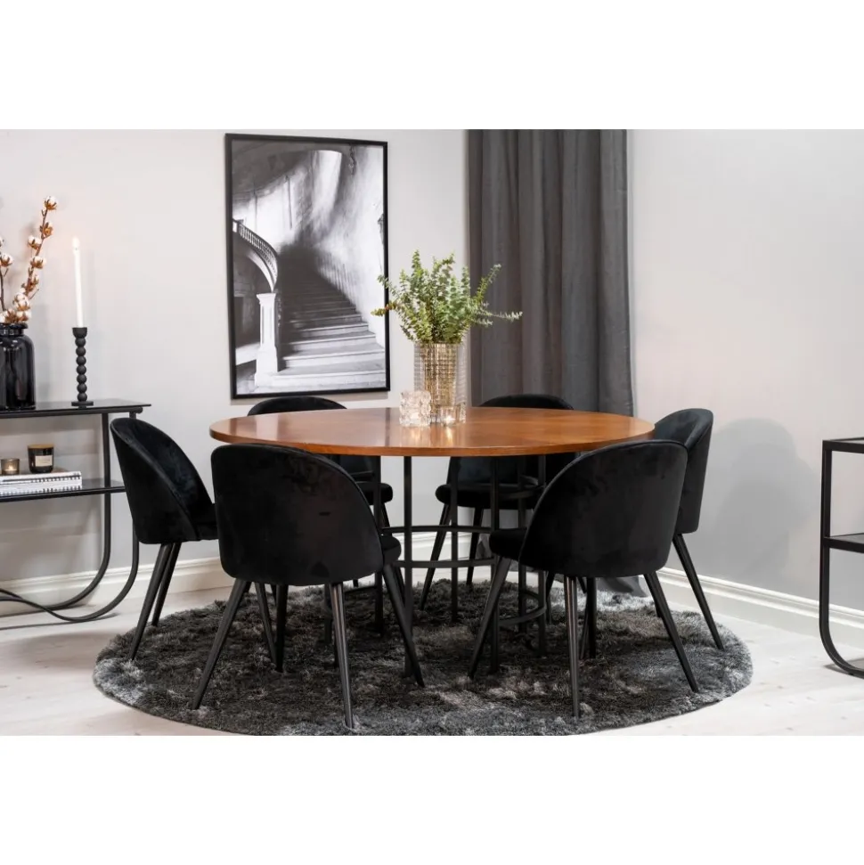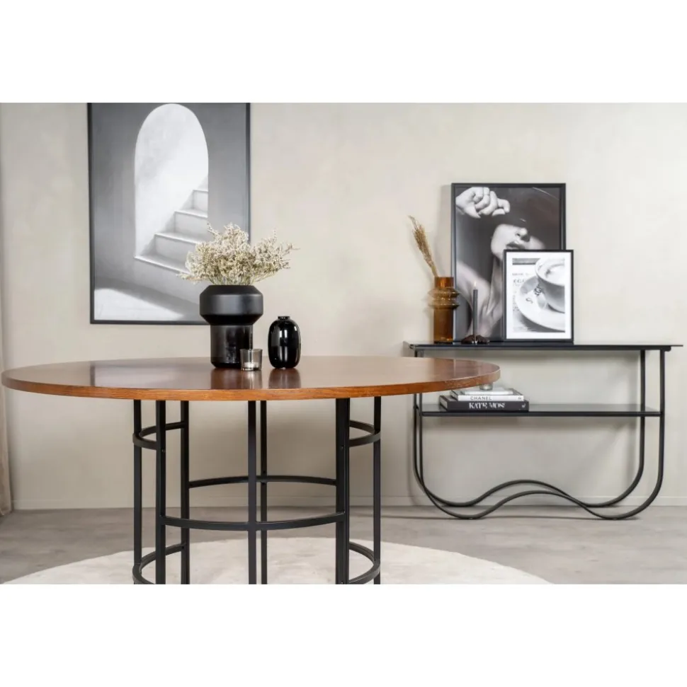Matbord av trä och metall.