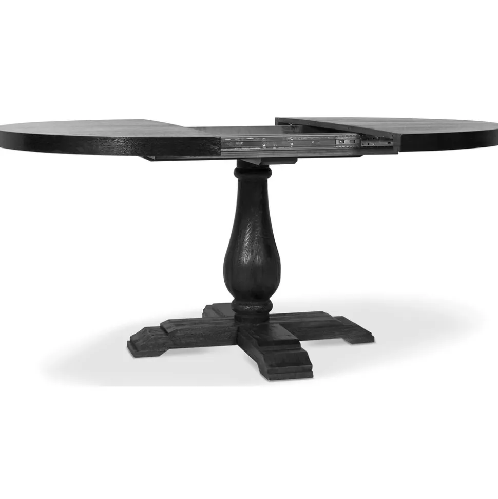 Vårt populära Lamier matbord är tillverkat med en vintagefinish och blir ett riktigt smycke för din . Ytan har färgskiftningar, gropar, sprickor och ojämnheter som ger varje dess speciella charm. Varje möbel i Lamier-serien skapar ett unikt signum. Bordet är 120 cm i diameter och går med den medföljande tilläggsskivan att förlänga till ett ovalt bord som är 170 cm långt.