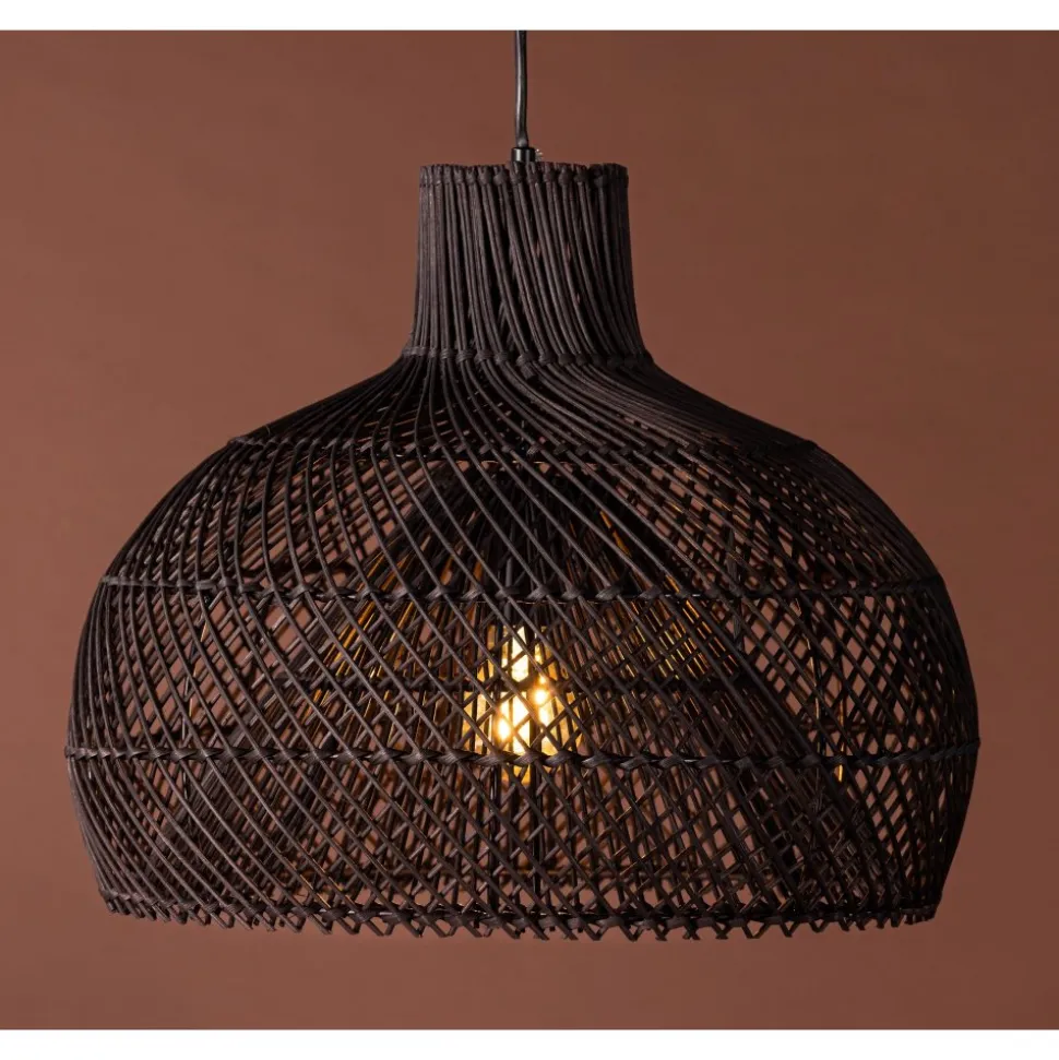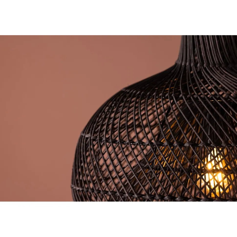 Taklampa som skapar en modern och lyxig känsla i rummet. Lampskärmen är rundad och består utav svart rotting i ett fint mönster. Den generösa storleken gör att lampan passar perfekt över matbordet eller i vardagsrummet. Med denna får du ett vackert sken som skapar en stämningsfull och hemtrevlig atmosfär i rummet.