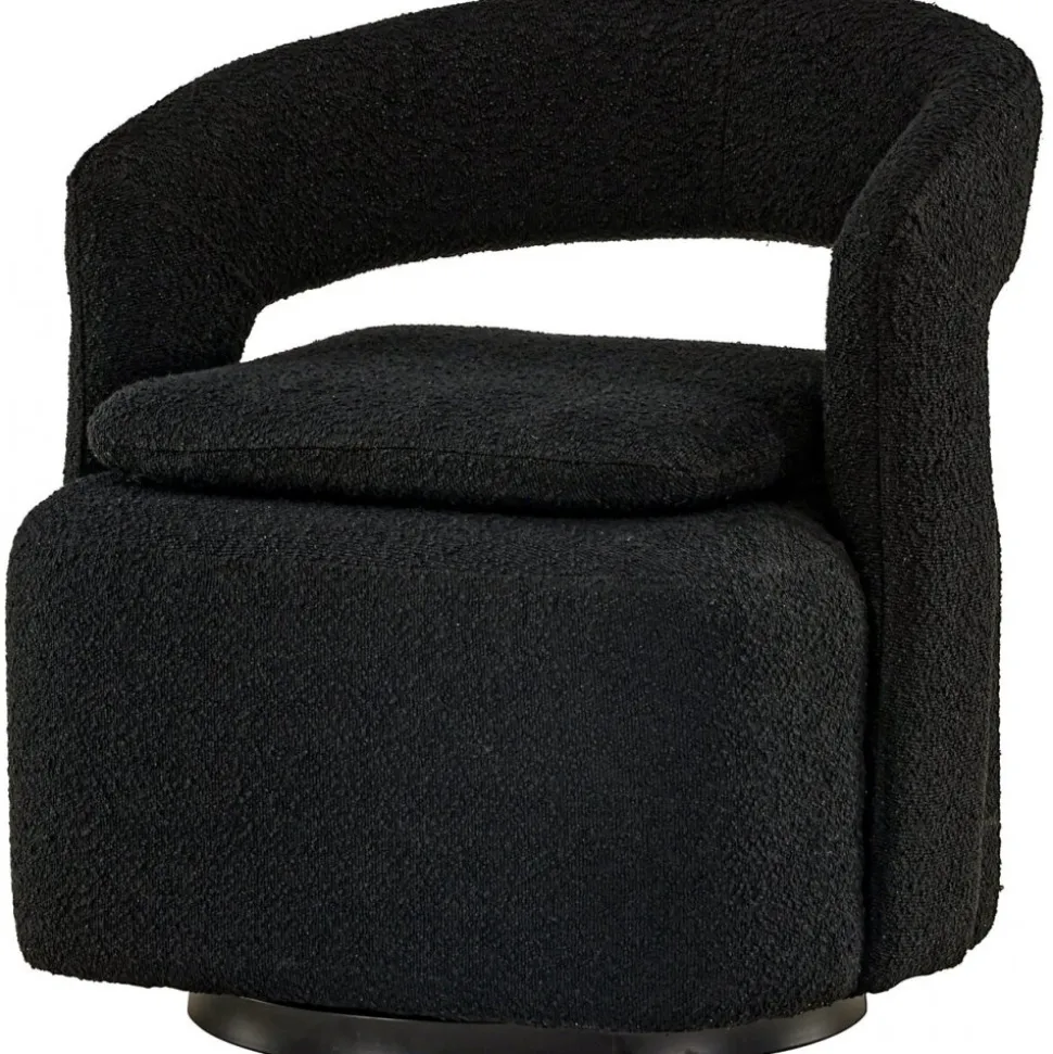 Möblera ditt hem modemedvetet och genomtänkt med en smart från serien Laurel! Den här svarta fåtöljen har en nätt storlek som gör den enkel att möblera med och den blir snabbt ett smart tillskott till inredningen. Designen är golvnära, vilket ger ett robust intryck och sitsen har en extra kudde som ger ett schysst lyft som är lika snyggt som bekvämt. Det öppna ryggslutet bidrar också till en mer modern utformning som imponerar. Fåtöljen är helklädd i svart boucletyg som bidrar till att den här fåtöljen klättrar på trendlistorna. Följ våra skötselråd så får du en smart fåtölj som kommer vara med dig länge! Levereras monterad.